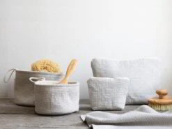 Kleiner Badezimmerkorb, Graphit Gestreift, 11 X 14 Cm, 100 % Baumwolle, GOTS