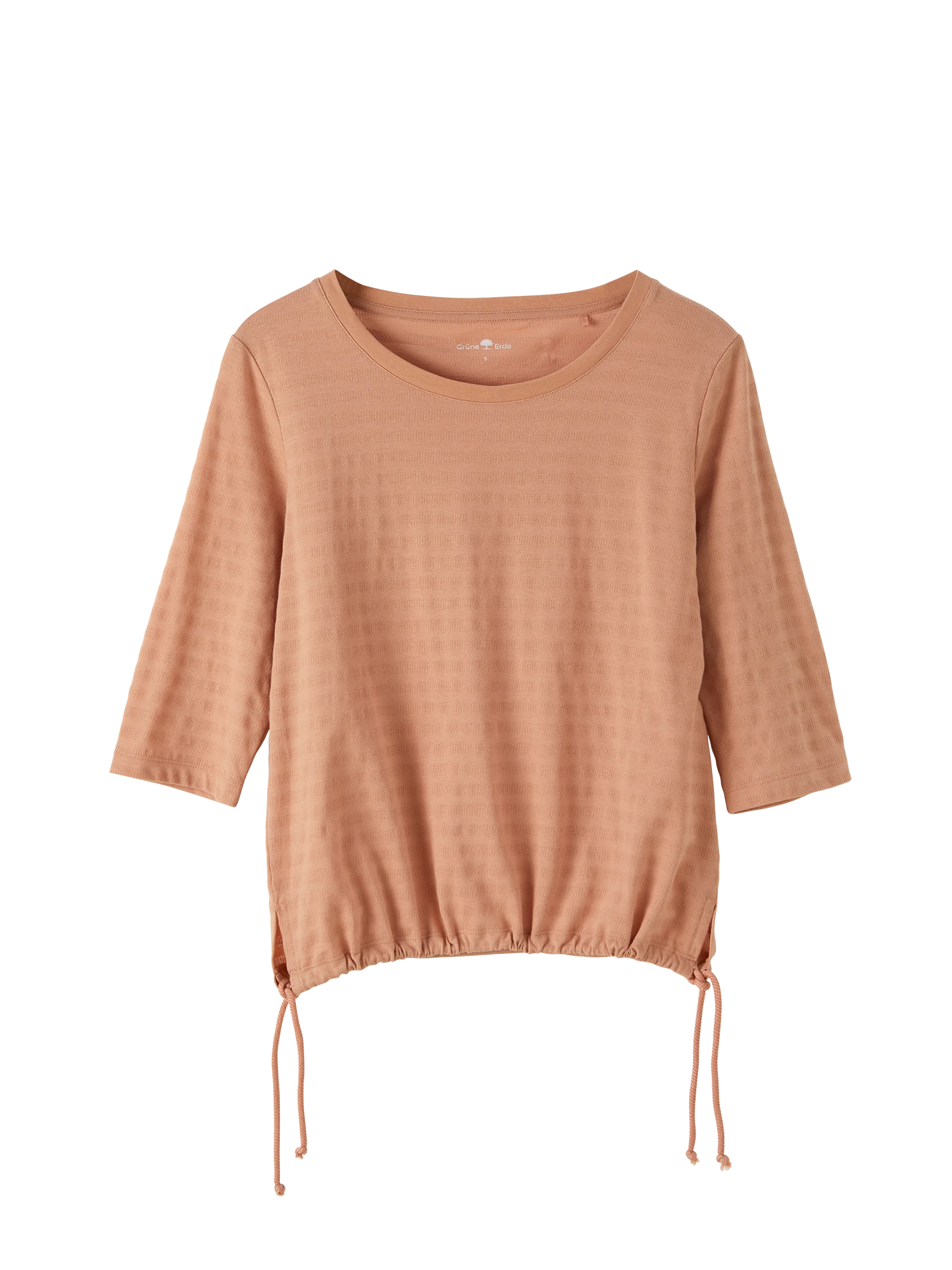 Das 3/4-Arm-Shirt aus weicher Bio-Baumwolle sorgt mit dem gewirkten Schattenstreifen für Aufsehen und ist der ideale Begleiter für Freizeit & Büro. Das Modell in feiner Jersey-Qualität hat einen zeitlos-schönen Schnitt und überzeugt mit vielen Details – wie einem breiten Rundhalsausschnitt mit einer Rippstruktur, 3/4-Ärmel sowie einem Tunnelzug mit integrierter Kordel am Saum, um die Weite ideal zu regulieren.
