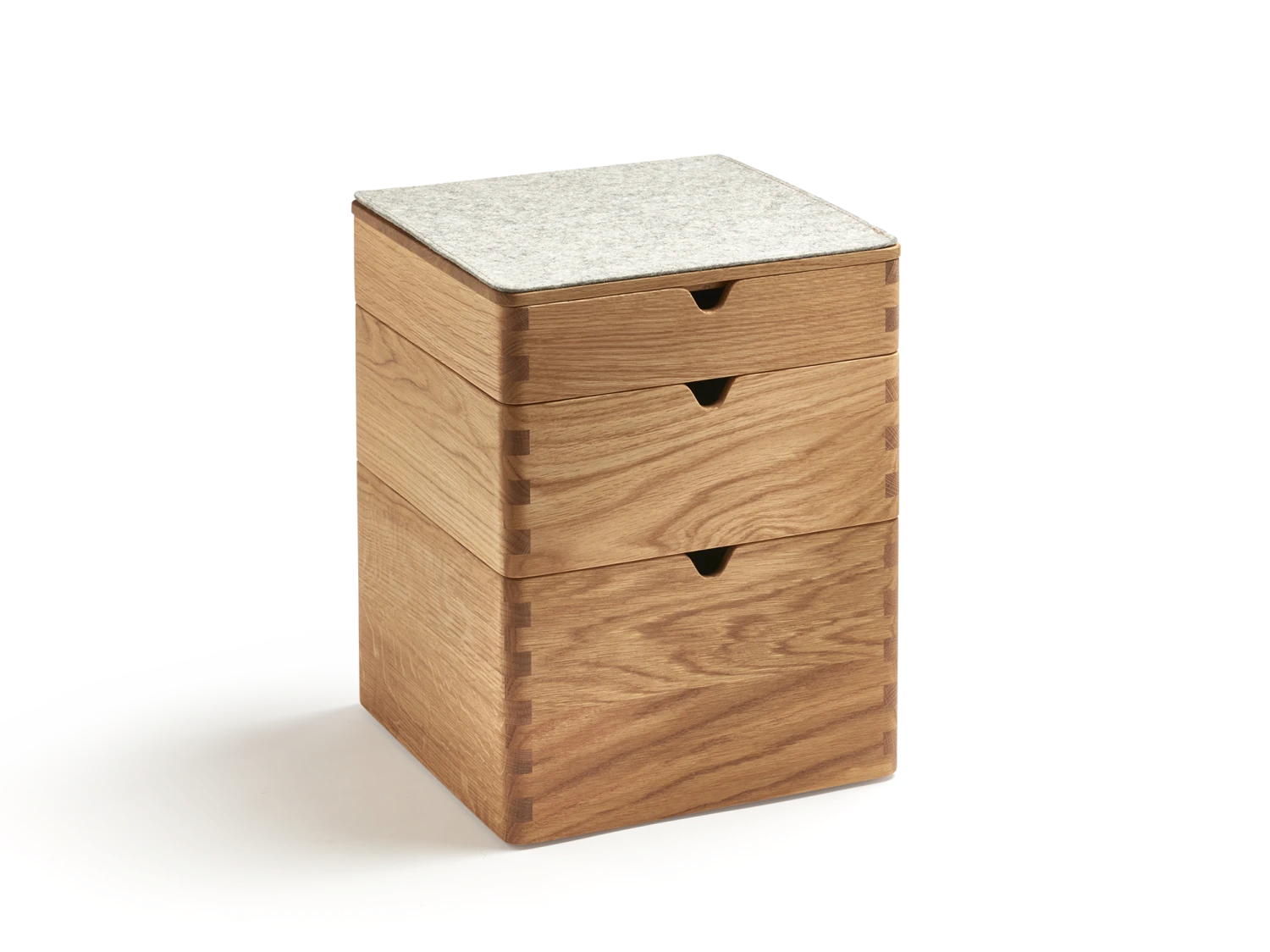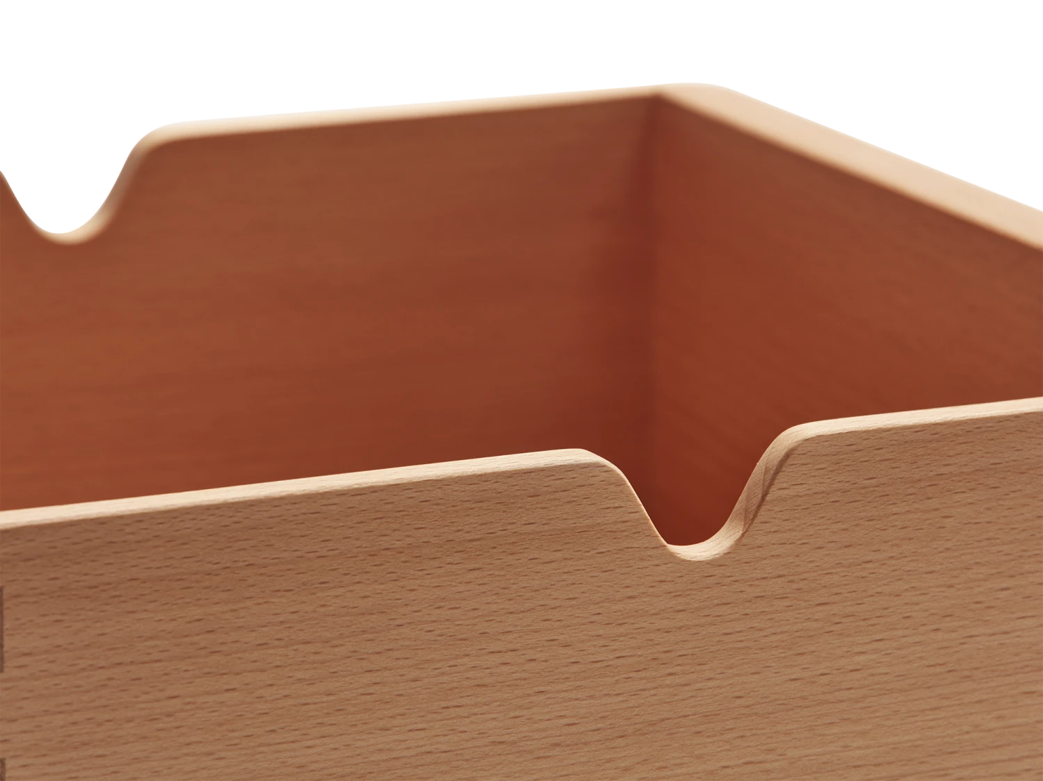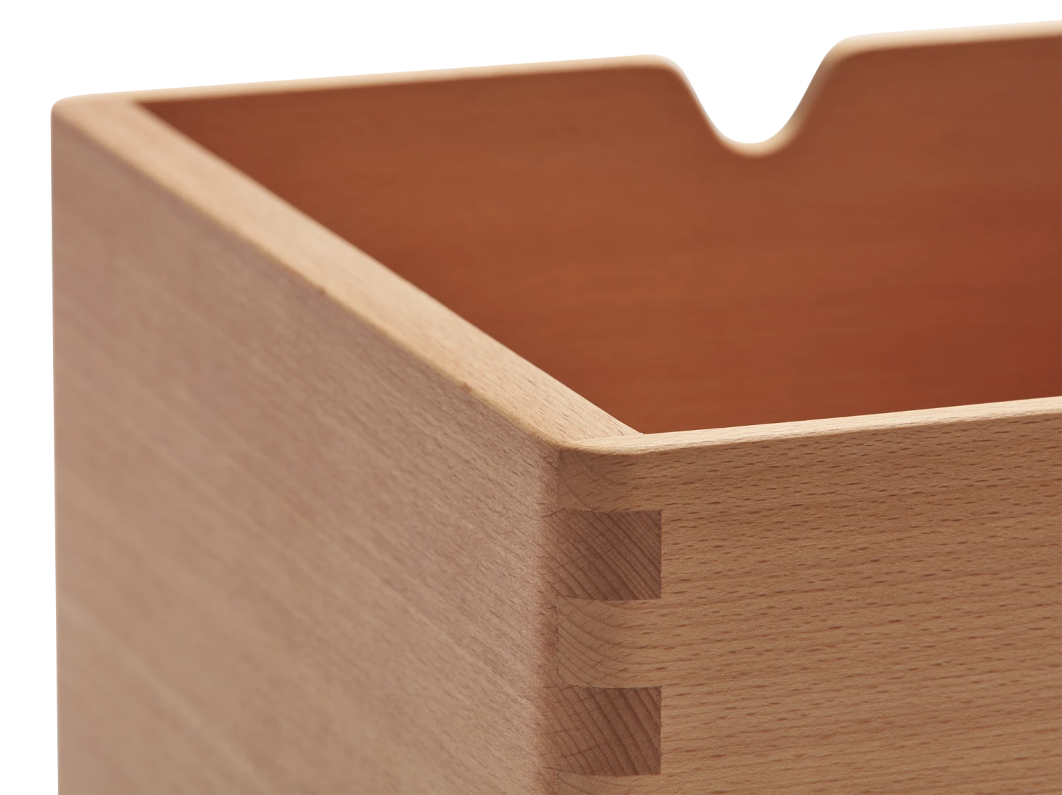 Optisch attraktive Fingerzinken, gerundete Kanten und Griffmulden.