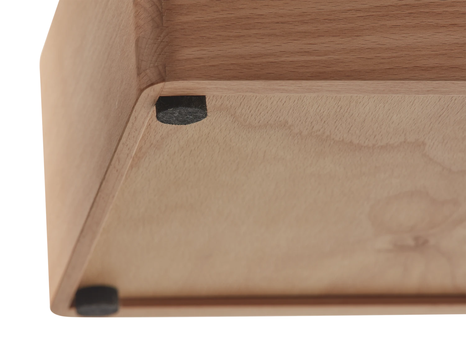 Filzgleiter an der Unterseite bewahren die Abstellfläche vor Kratzern und erleichtern das Stapeln der Boxen.