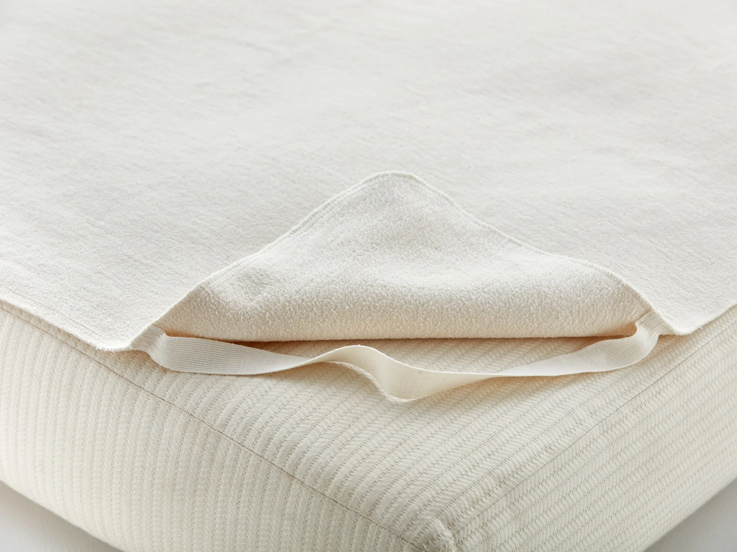 Gefertigt aus Baumwoll-Flanell, naturbelassen, warm, weich. Der schwere Baumwollstoff (470 g/m2) wird nach dem Weben beidseitig geraut und bekommt eine flauschig-warme Oberfläche. Die Auflage lässt sich einfach wechseln, lüften und waschen. Sie ist mit elastischen Latexbändern ausgestattet: Damit wird sie an der Matratze befestigt und kann nicht verrutschen.