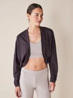 Feminin & sportlich: Diese zeitlose Bolerojacke entsteht aus hautfreundlicher Bio-Baumwolle und wird sorgfältig bei unserem Partnerbetrieb nach dem strengen Global Organic Textile Standard gefertigt sowie zertifiziert.