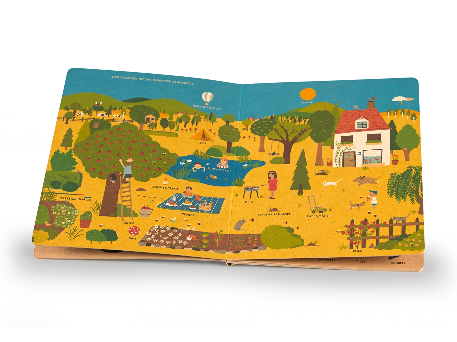 Im Frühlingsgrün beginnen die Vögel mit dem Nestbau und man kann durch Pfützen springen. Dann wird es endlich richtig warm und alles trifft sich am See zum Schwimmen oder Eis essen – der Sommer ist da. Im Herbst brechen die Zugvögel auf, der Igel sucht einen Platz zum Winterschlaf und das Eichhörnchen versteckt Nüsse. Und wenn der Winter kommt, packen wir uns dick ein und nichts wie raus zum Schneemannbauen oder Eislaufen!