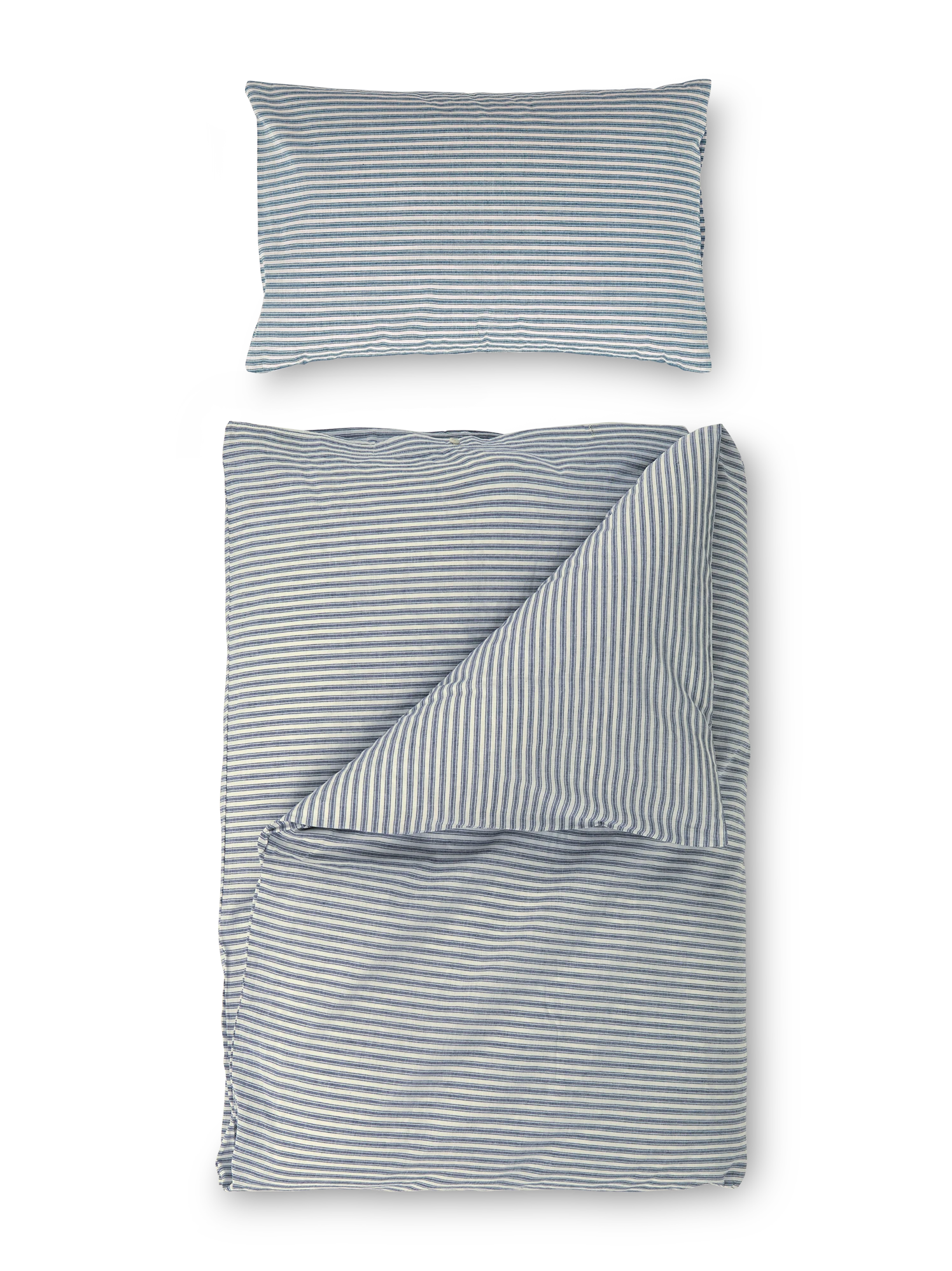 Feine, in Querstreifen gewebte Baumwoll-Renforcé-Qualität, ökologisch unbedenklich gefärbt. Das kühle, glatte Material ist ideal für den Sommer, aber auch im Winter sehr angenehm. Sichtbarer Knopfverschluss aus Steinnuss. Pflegeleicht. Stoffgewicht: 120 g/m2.