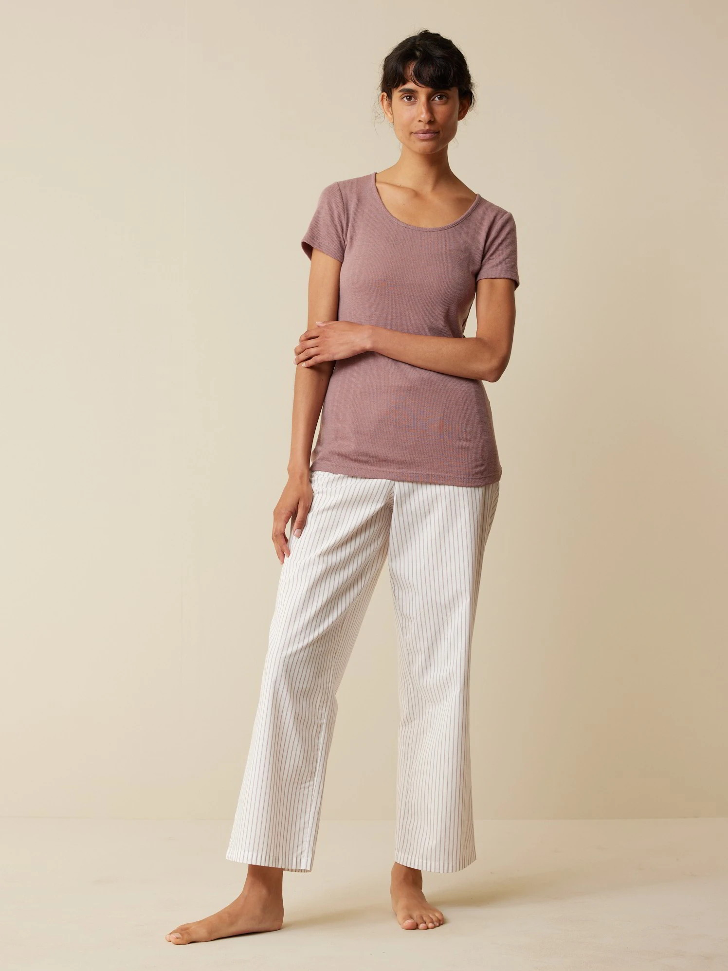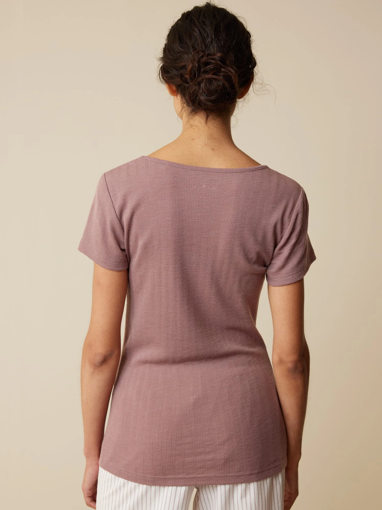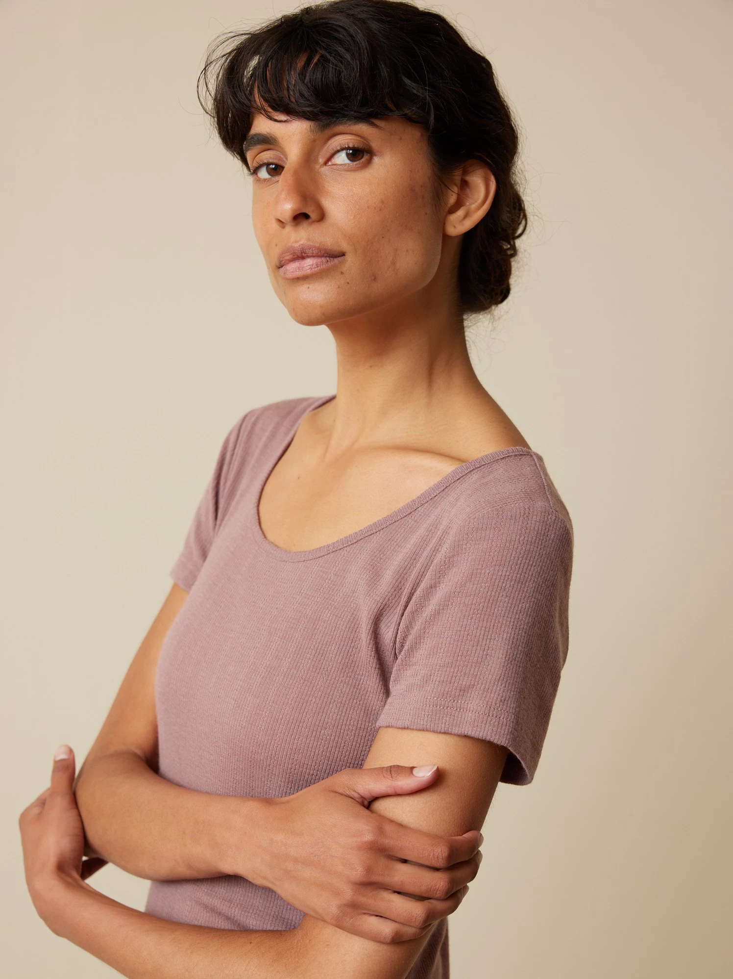Eleganter Feinstrick aus wertvoller Wolle kbT: Das figurbetonte Shirt mit der feinen Rippstruktur und der zarten Pointelle-Qualität wird garantiert ein beliebtes Basic. Mit kurzen Ärmeln und Rundhalsausschnitt.
