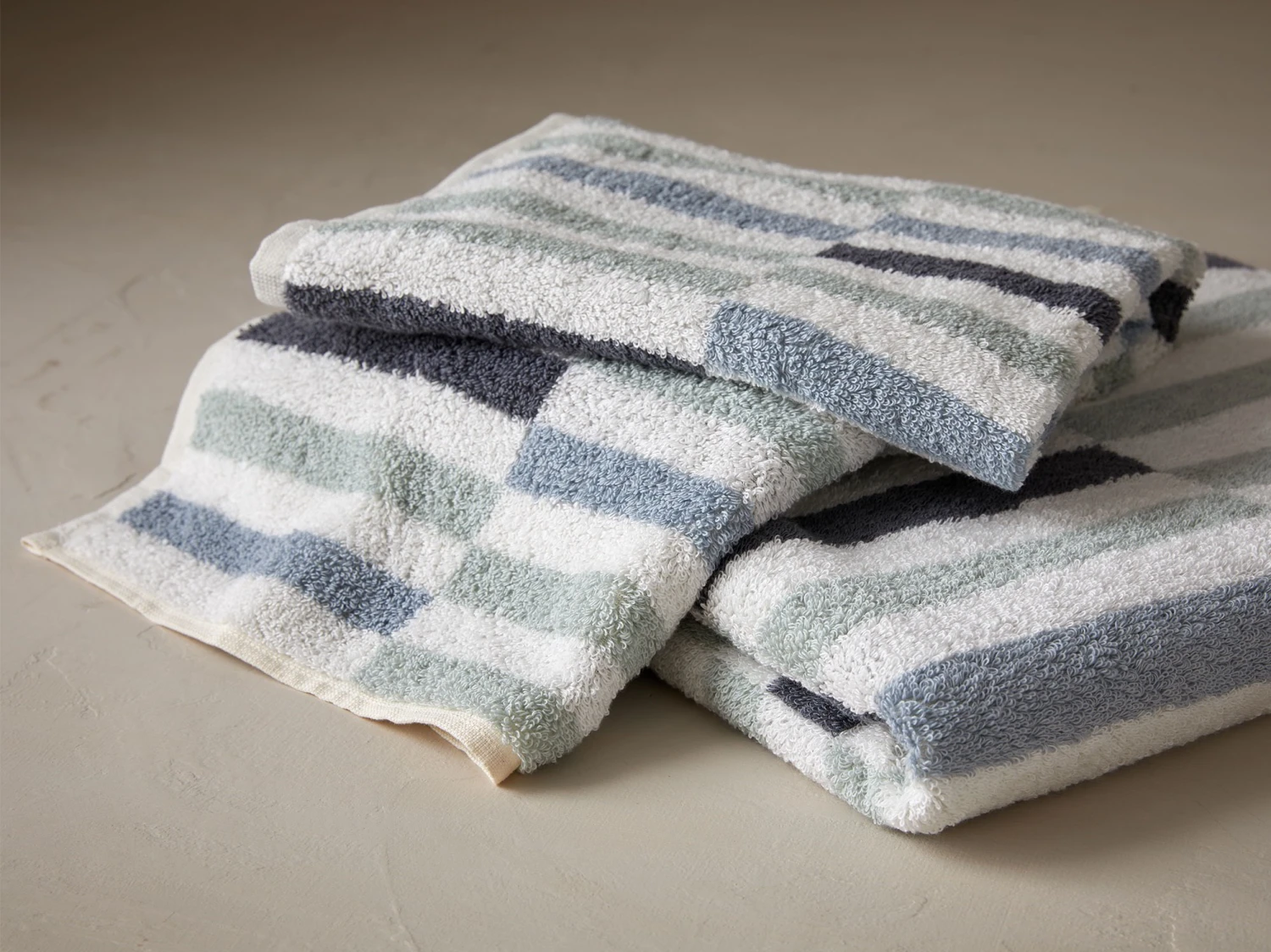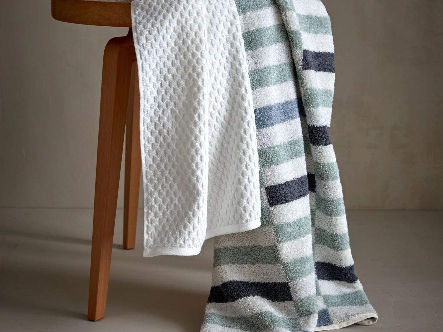 Die Badeserie Jacquard bringt sanfte Farben in Ihr Badezimmer. Die Auswahl der einzelnen Farbtöne wurde harmonisch aufeinander – aber auch passend zu weiteren Badserien von Grüne Erde – abgestimmt und auch das moderne Dessin wurde auf die jeweilige Größe des Naturproduktes angepasst. Die einzelnen Komponenten der Serie entstehen aus hautfreundlicher Baumwolle kbA und werden bei unserem Partnerbetrieb im oberösterreichischen Waldviertel in handwerklich sehr aufwendiger Jacquard-Webart gefertigt. Die gesamte Wertschöpfungskette obliegt den strengen Richtlinien des Global Organic Textile Standards sowie der NATURTEXTIL BEST-Zertifizierung des IVN. Mit Aufhängung auf der Innenseite.