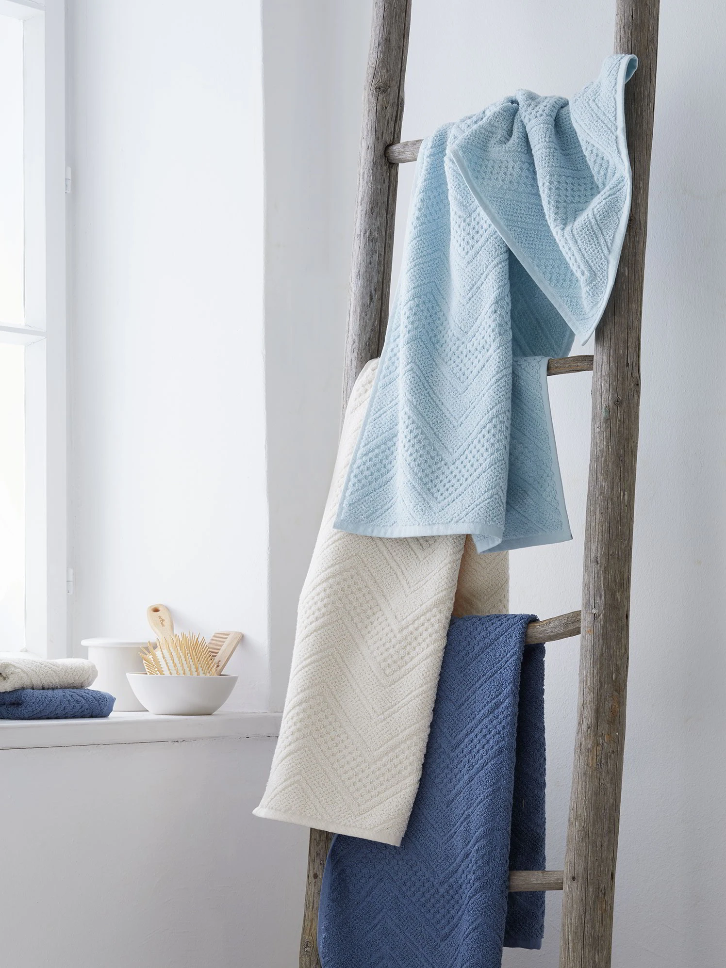 Weiche und natürlich-hautfreundliche Badetextilien, damit auch nach dem Baden oder Duschen das angenehm behagliche Gefühl, die wohlige Wärme und der Erholungseffekt erhalten bleiben. Mit einem eleganten Mosaik – durch eine spezielle Hoch-Tief-Webtechnik ergibt sich die Struktur auf beiden Seiten der Badetextilien. Die Farben sind sehr modern und harmonisch aufeinander abgestimmt. Durch die Farbgebungen ist für nahezu jedes Badezimmer das Passende dabei, miteinander kombiniert bringen sie farbenfrohe Abwechslung. Sie entstehen aus reiner Bio-Baumwolle und sind nach dem strengen Global Organic Textile Standard gefertigt, mit Waldviertler Urgesteinswasser vorgewaschen.