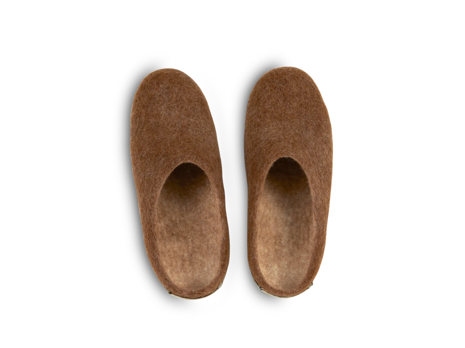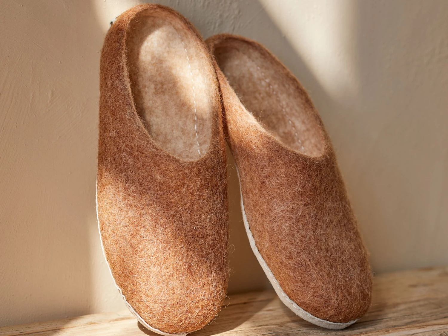 Ein schönes Stück Natur, welches wir nur zu gern tragen. Dieses Modell entsteht aus hochwertiger Schafschurwolle in einem sozialen Betrieb in Nepal. Das Naturprodukt wird mit umweltfreundlichen Farben gefärbt, kardiert und in traditioneller Handarbeit zu einem Schuh geformt. Anschließend wird die Sohle aus pflanzlich gegerbtem Leder angenäht – für eine lange Lebensdauer!