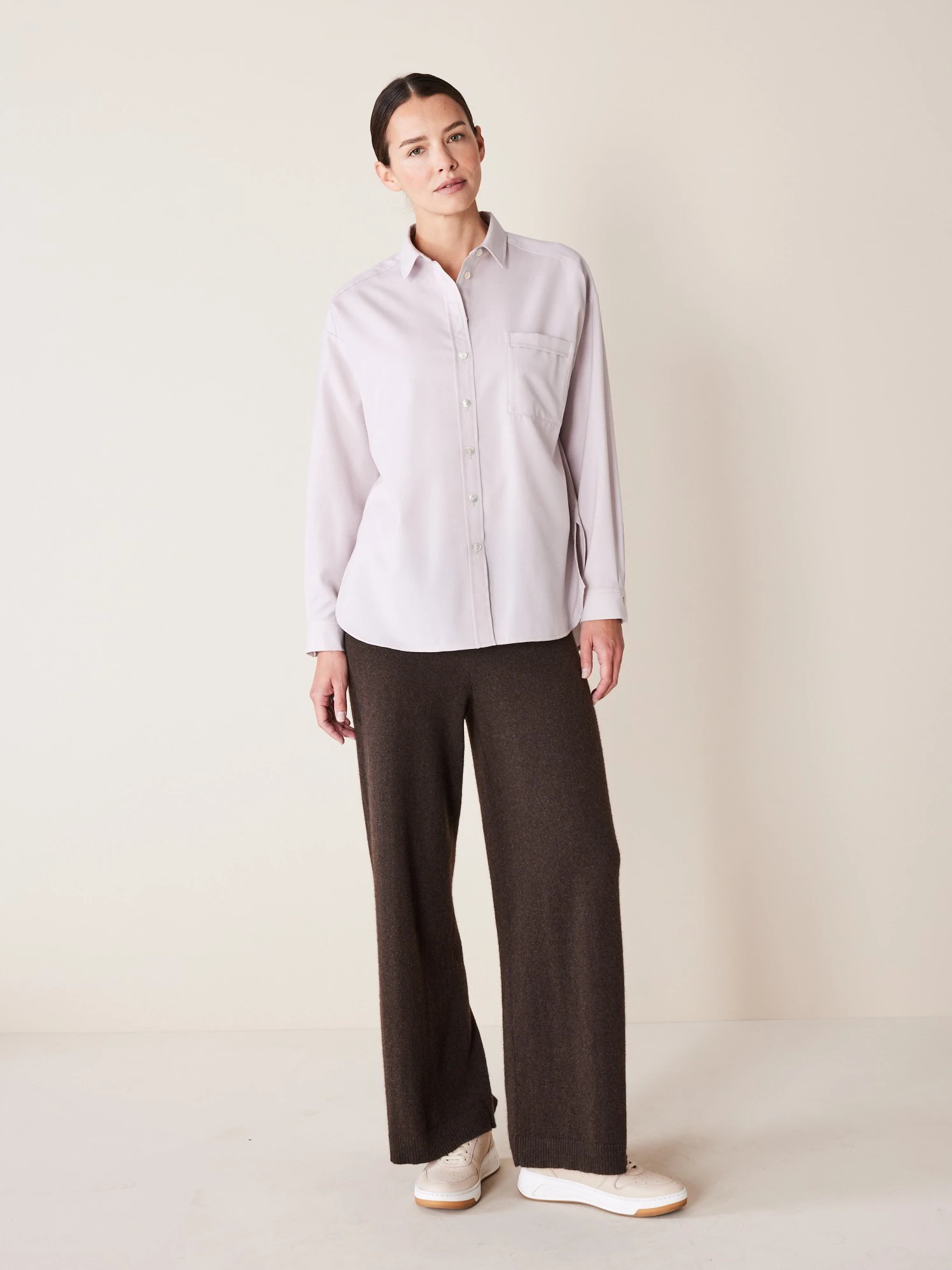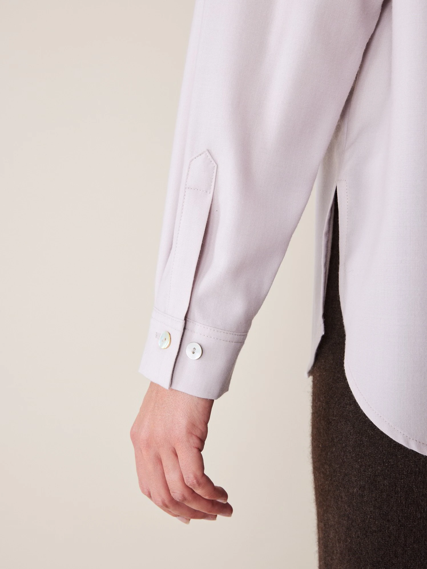 Ideal zum Kombinieren und für jede Gelegenheit passend: Die Hemdbluse aus weicher Wolle kbT ist ein eleganter Klassiker. Sie wird bei unserem Partnerbetrieb nach dem strengen Global Organic Textile Standard gefertigt. Die Bluse hat einen Kragen, eine aufgesetzte Brusttasche und eine Knopfleiste. Weitere Details: Manschettenärmeln mit Schlitz und Knopf, sowie ein abgerundeter Saum, der im Rückenteil länger ist und eine Rückenpasse mit zwei Bewegungsfalten.