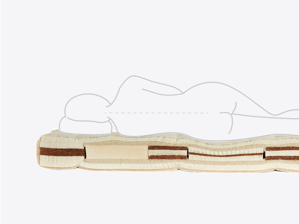 Die Himmlische Wolke Klassik steht für ein gutes Schlafklima und hohen Komfort. Die saugfähigen, luftdurchlässigen und anpassungsfähigen Schichten aus reinen Naturfasern – insgesamt 19 cm hoch – sind in einen kompakten Naturlatexrahmen eingebettet und mit vielen Steppbändern durchzogen – dadurch entsteht ein idealer Halt in der Matratze. Die unterschiedlich elastischen Zonen – für Kopf, Schulter, Lende, Becken, Beine, Füße – garantieren in allen Liegepositionen eine ideale Anpassung an die einzelnen Körperpartien.