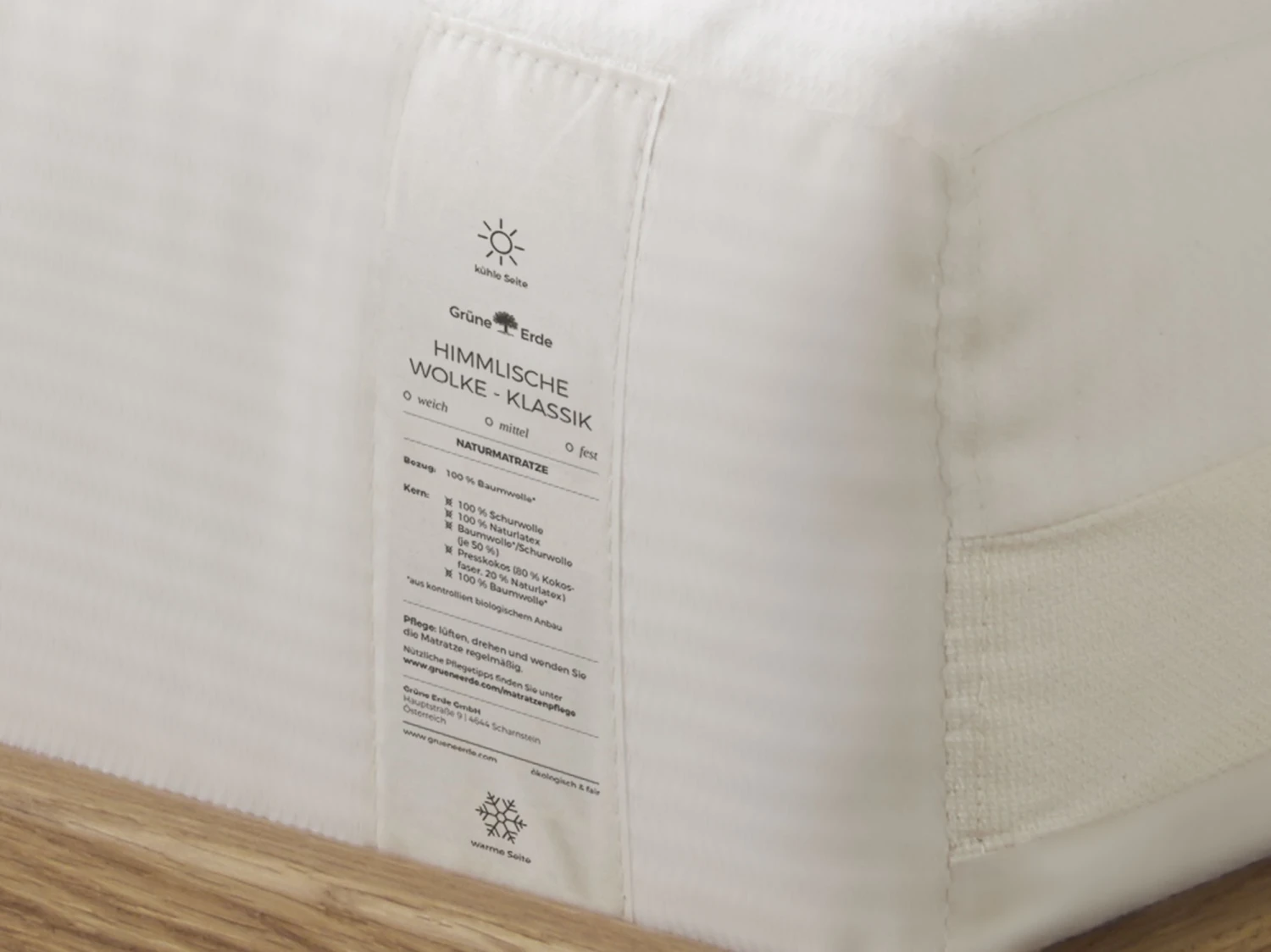 Die Himmlische Wolke Klassik entsteht aus reinen Naturmaterialien in liebevoller Handarbeit in unserer eigenen Werkstätte im oberösterreichischen Almtal. Sie wird konsequent nach den strengen öko-sozialen Vorgaben des Global Organic Textile Standards (GOTS) sowie dem QUL gefertigt und zertifiziert.