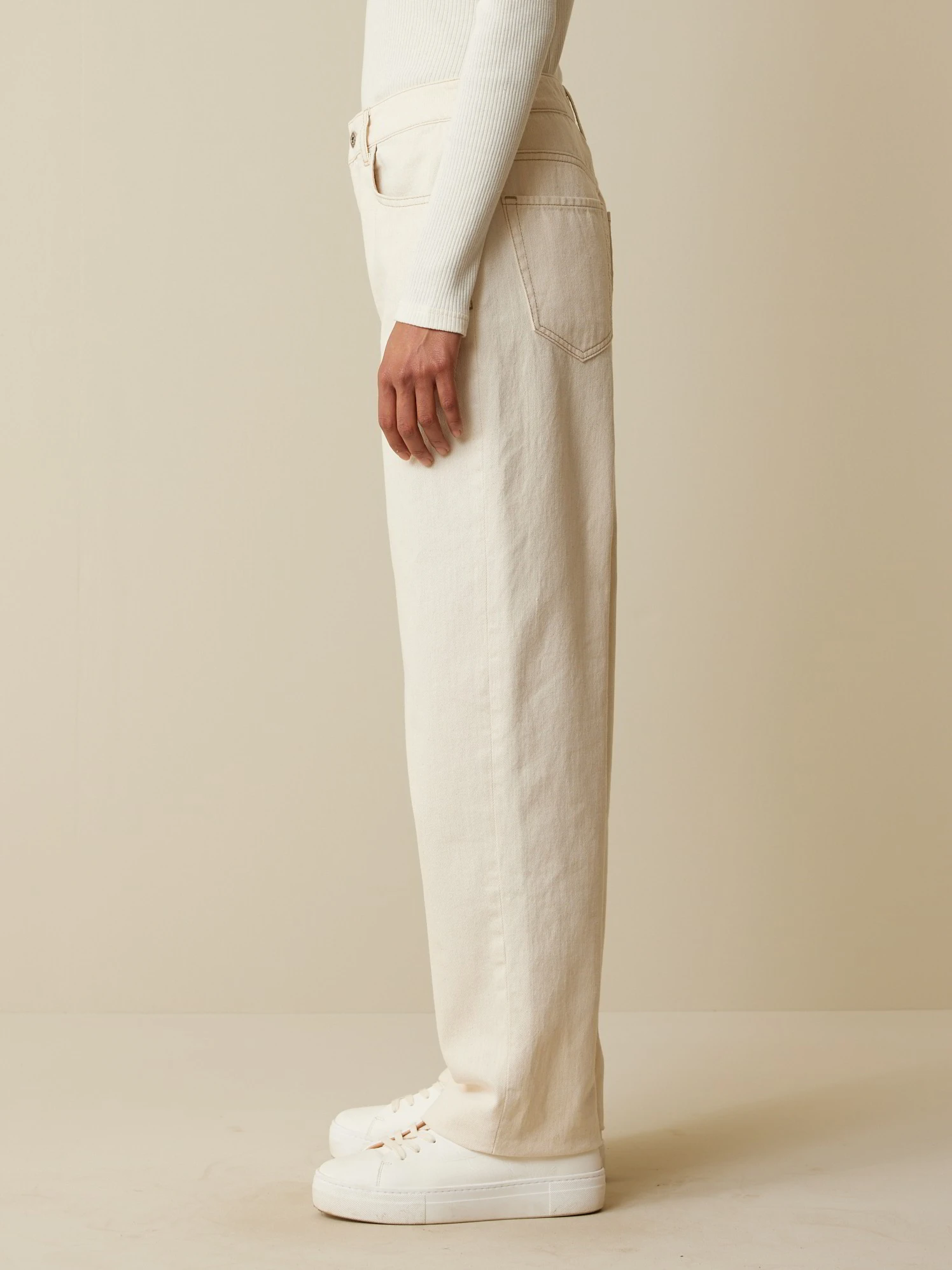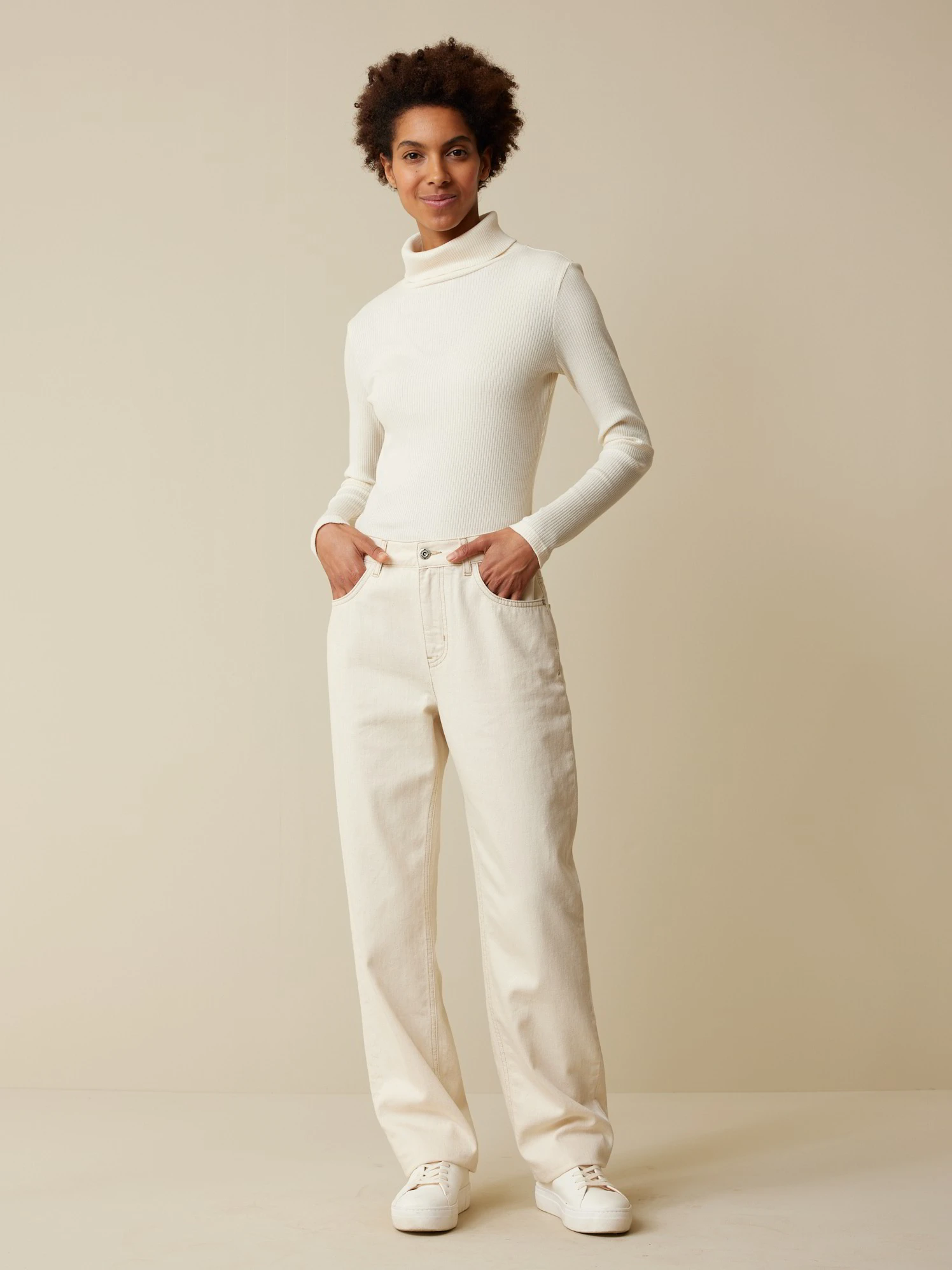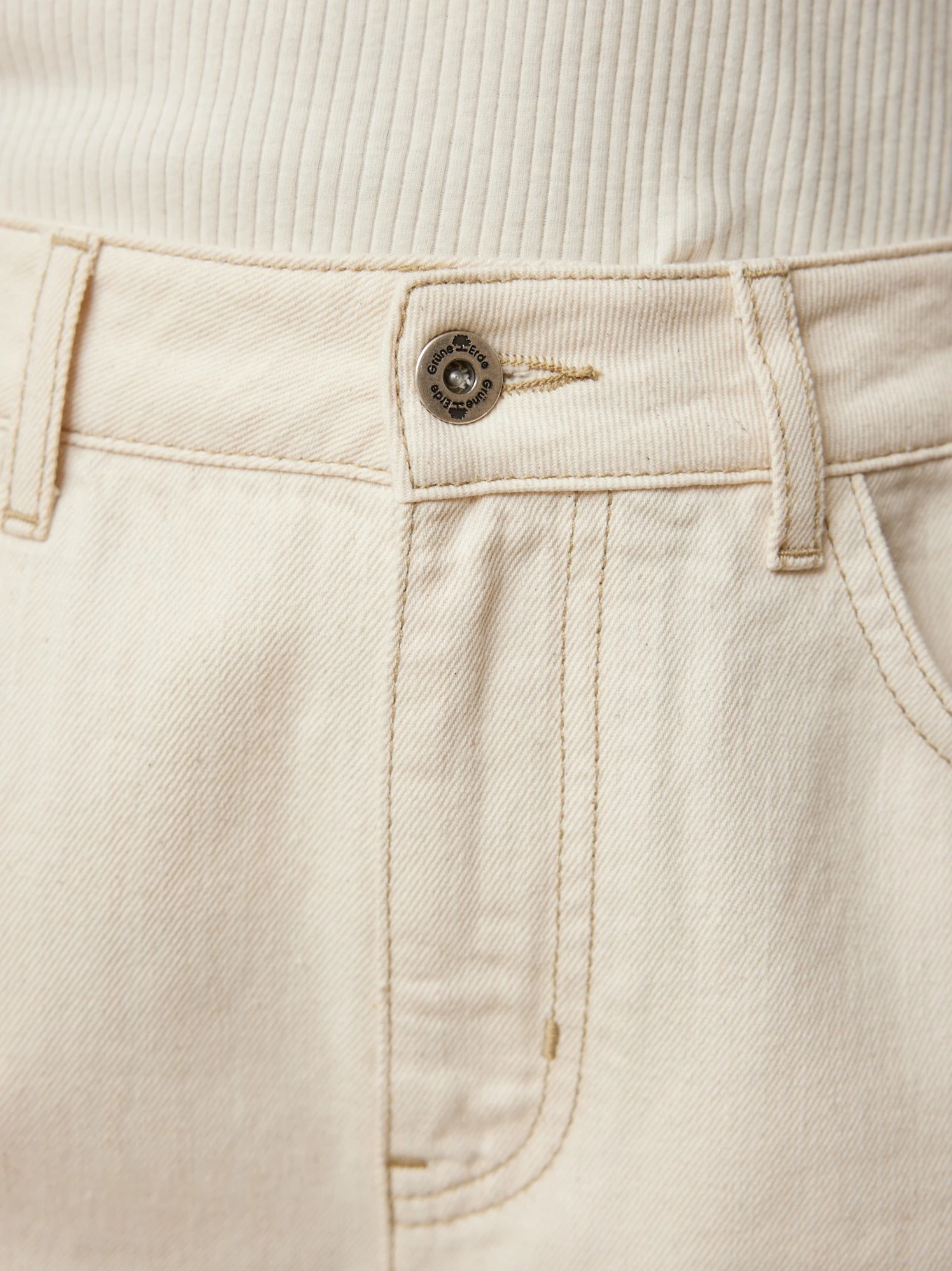 Ungefärbte Hose aus weicher Baumwolle – rein, unverfälscht, hautfreundlich. Das Modell mit der Kontraststeppung hat einen Jeansknopf, einen Reißverschluss und Gürtelschlaufen am Bund. Vorne mit zwei Eingriffstaschen inkl. einer Münztasche, hinten mit typischer Sattelverarbeitung und aufgesetzten Gesäßtaschen.