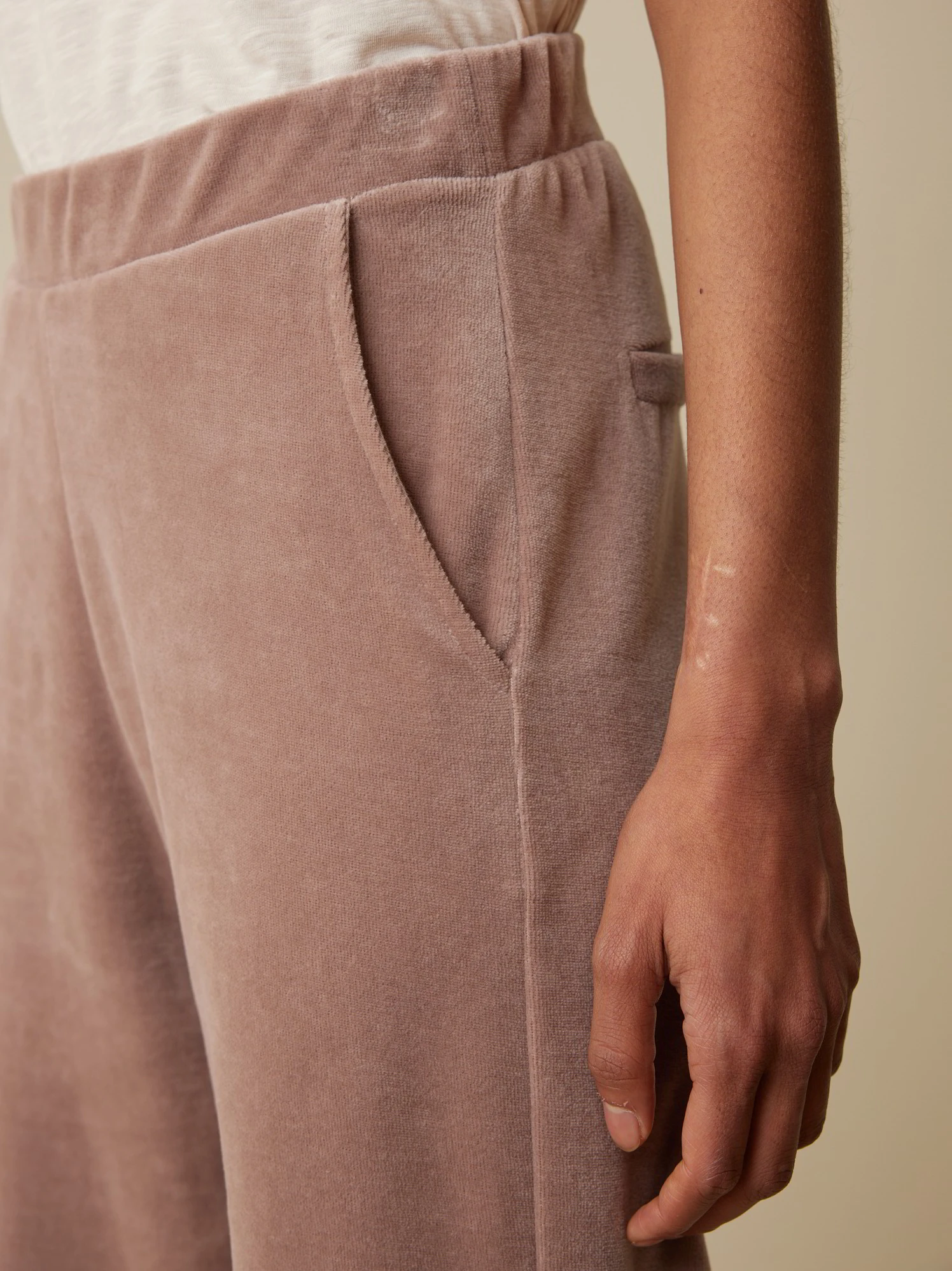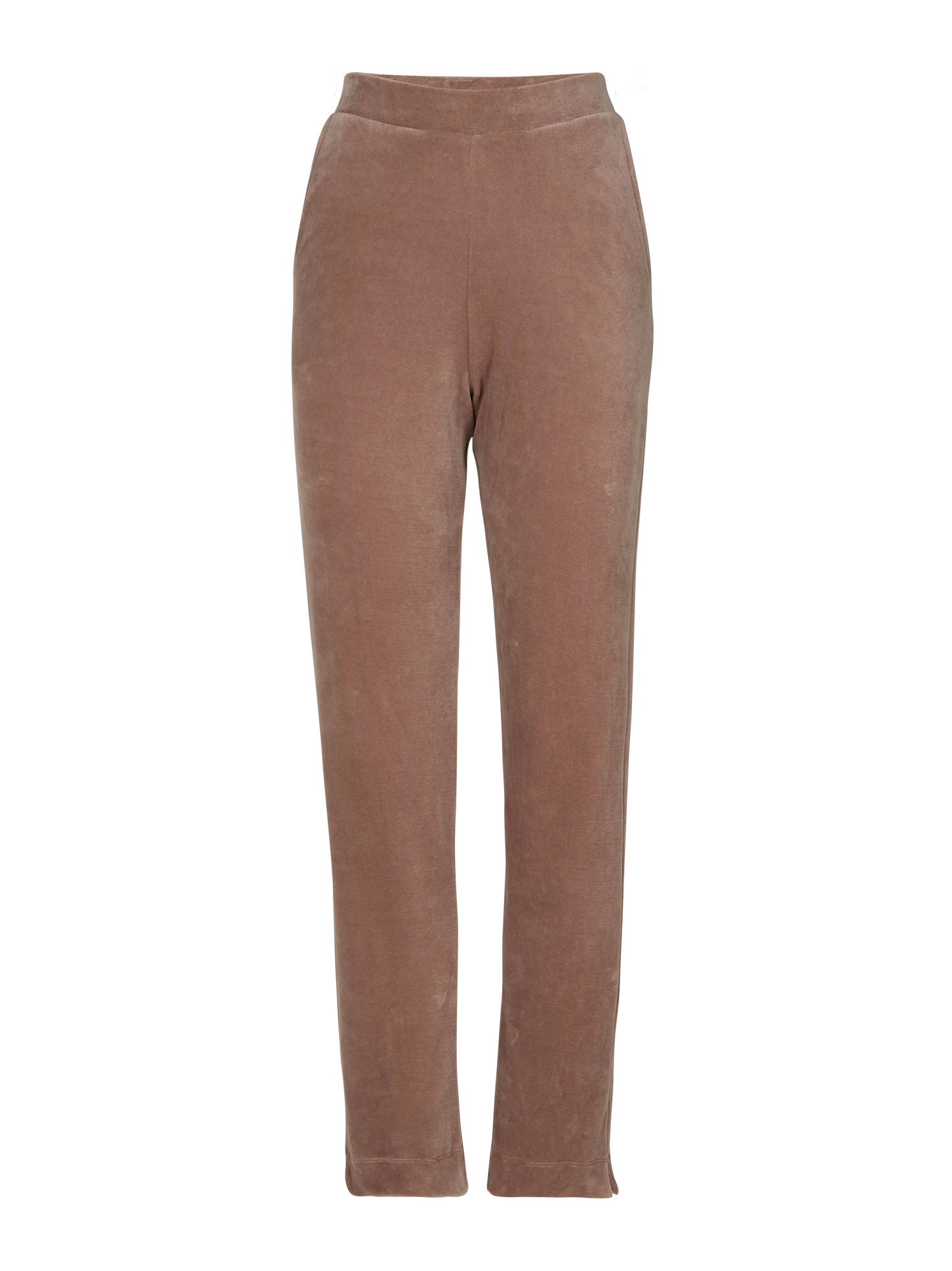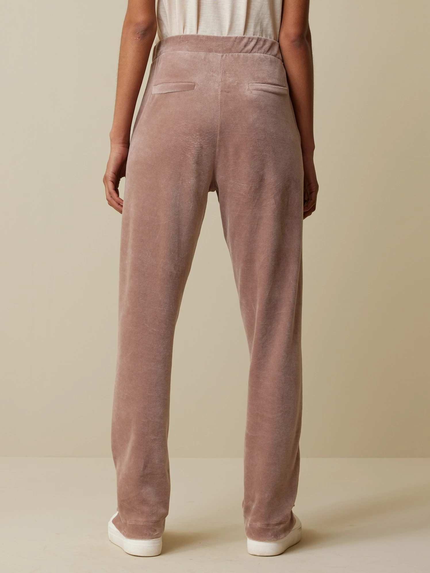 Anschmiegsam-weiche Hose aus besonders sanfter Nicky-Qualität. Das Modell trägt sich angenehm, hat eine bequeme Passform und lässt sich unkompliziert kombinieren. Ein Gummizug im Bund sorgt für einen guten Halt. Zwei seitliche Eingriffstaschen, zwei Zierleistentaschen auf der Hinterhose und Seitenschlitze am Saum runden die Hose harmonisch ab.