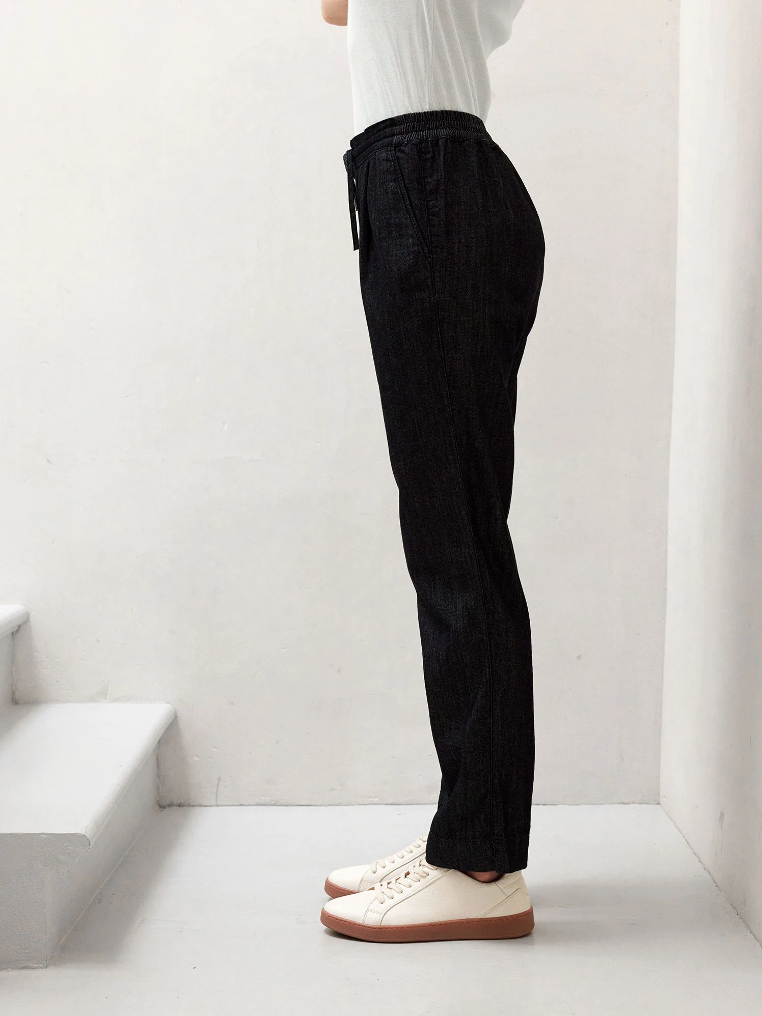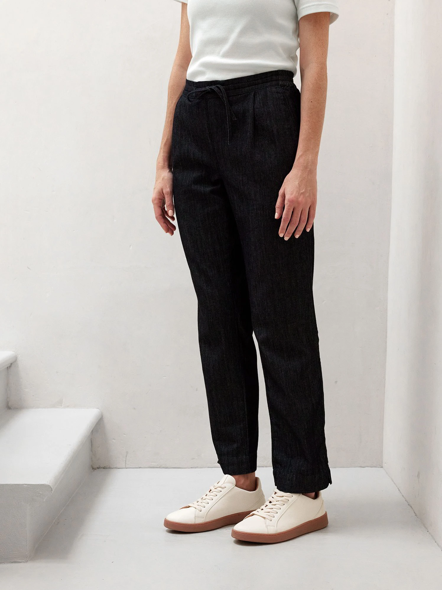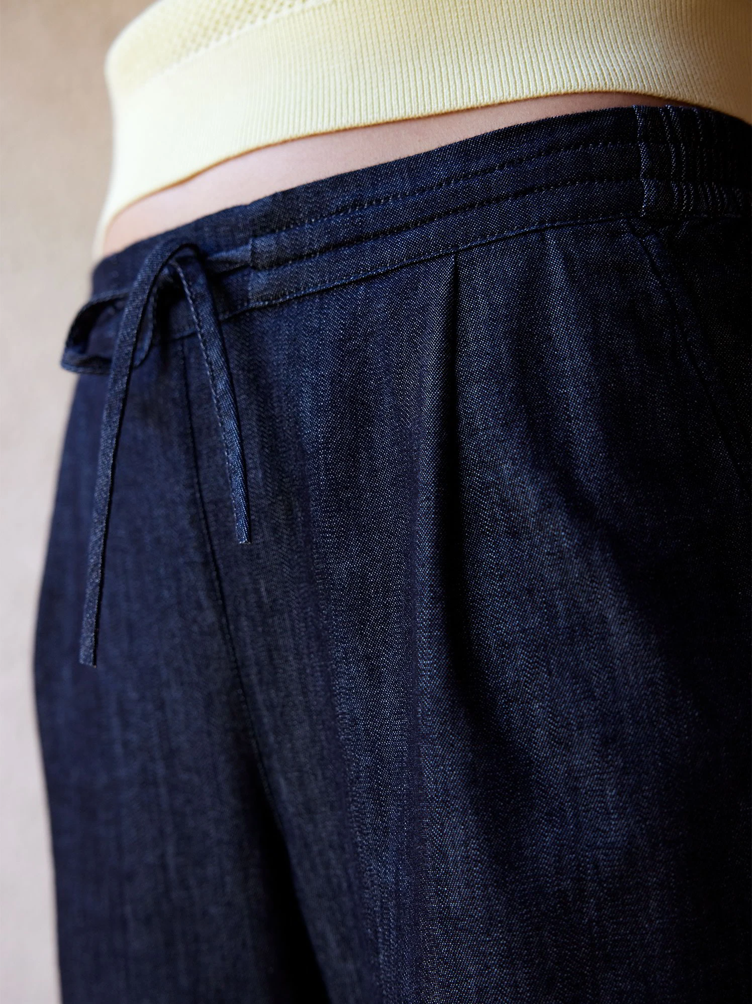 Die Joggpants aus hochwertiger Baumwolle sorgt dank der legeren Passform für eine schöne Silhouette. Das Modell in leichtem Baumwoll-Denim mit dem leicht zulaufenden Bein überzeugt aber zudem mit vielen Details: praktischer Kordelzug in der Taille, Eingriffstaschen und Seitenschlitze am Saum. Ein praktischer Allrounder, den man überall tragen kann.