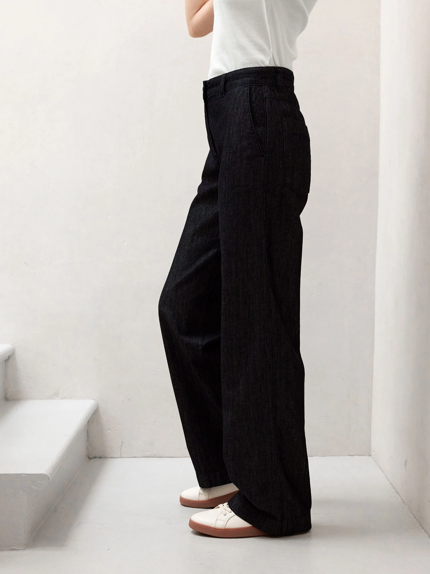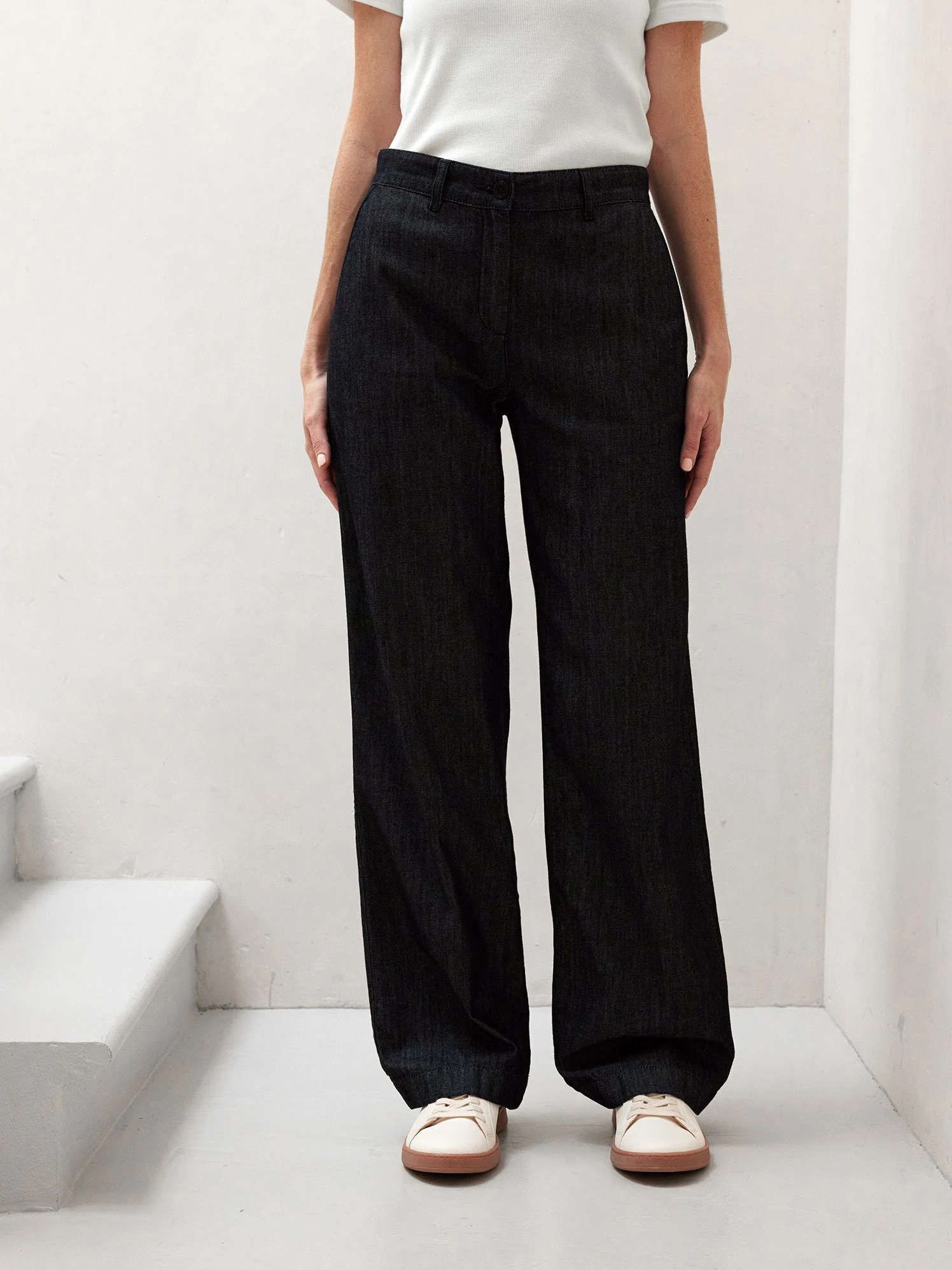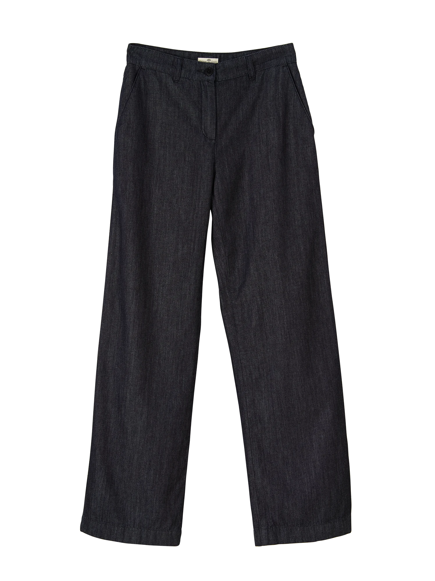 Die Hose entsteht aus hochwertiger Baumwolle kbA und sorgt dank der weiten Passform für eine schöne Silhouette. Das Modell in Baumwoll-Denim überzeugt aber zudem mit vielen Details: Verschlossen wird die Hose mit dem weiten Bein mittels Knopf- und Reißverschluss. Zwei seitliche Eingriffstaschen sowie zwei Zierleistentaschen auf der Hinterhose zieren das Modell.