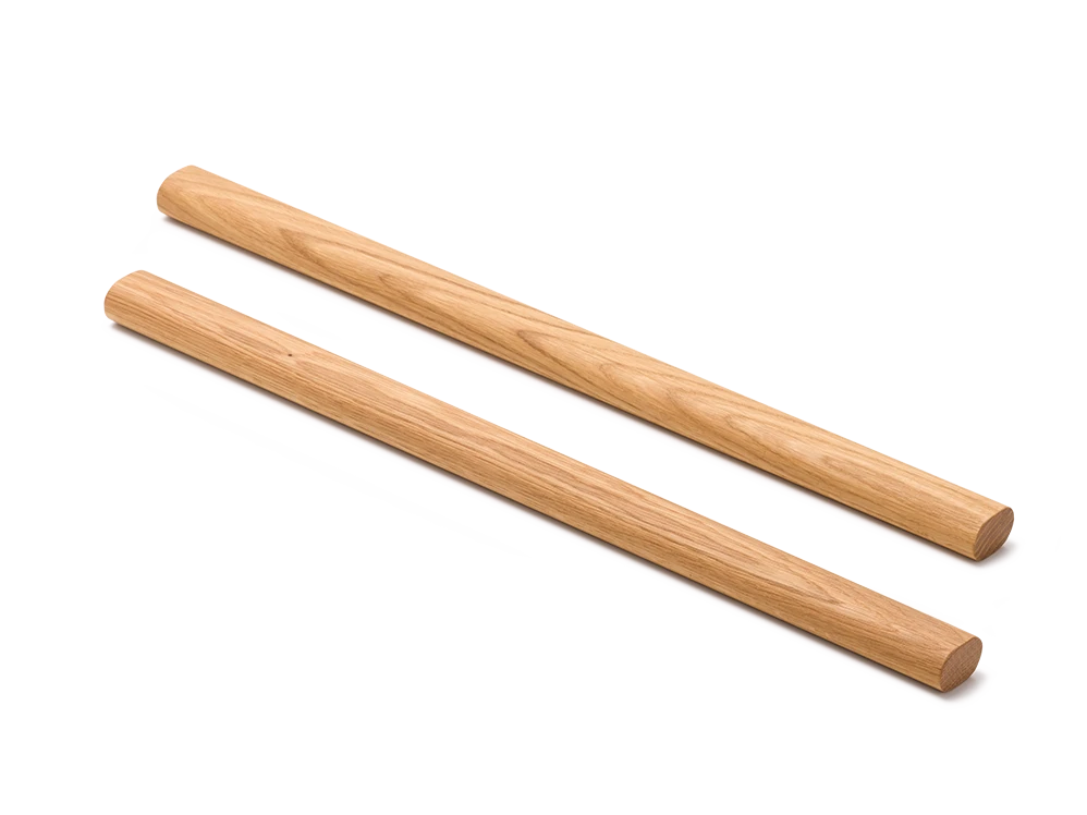 Vollholz, sehr stabil und biegefest, wird in entsprechenden Ausfräsungen im Corpus eingelegt.