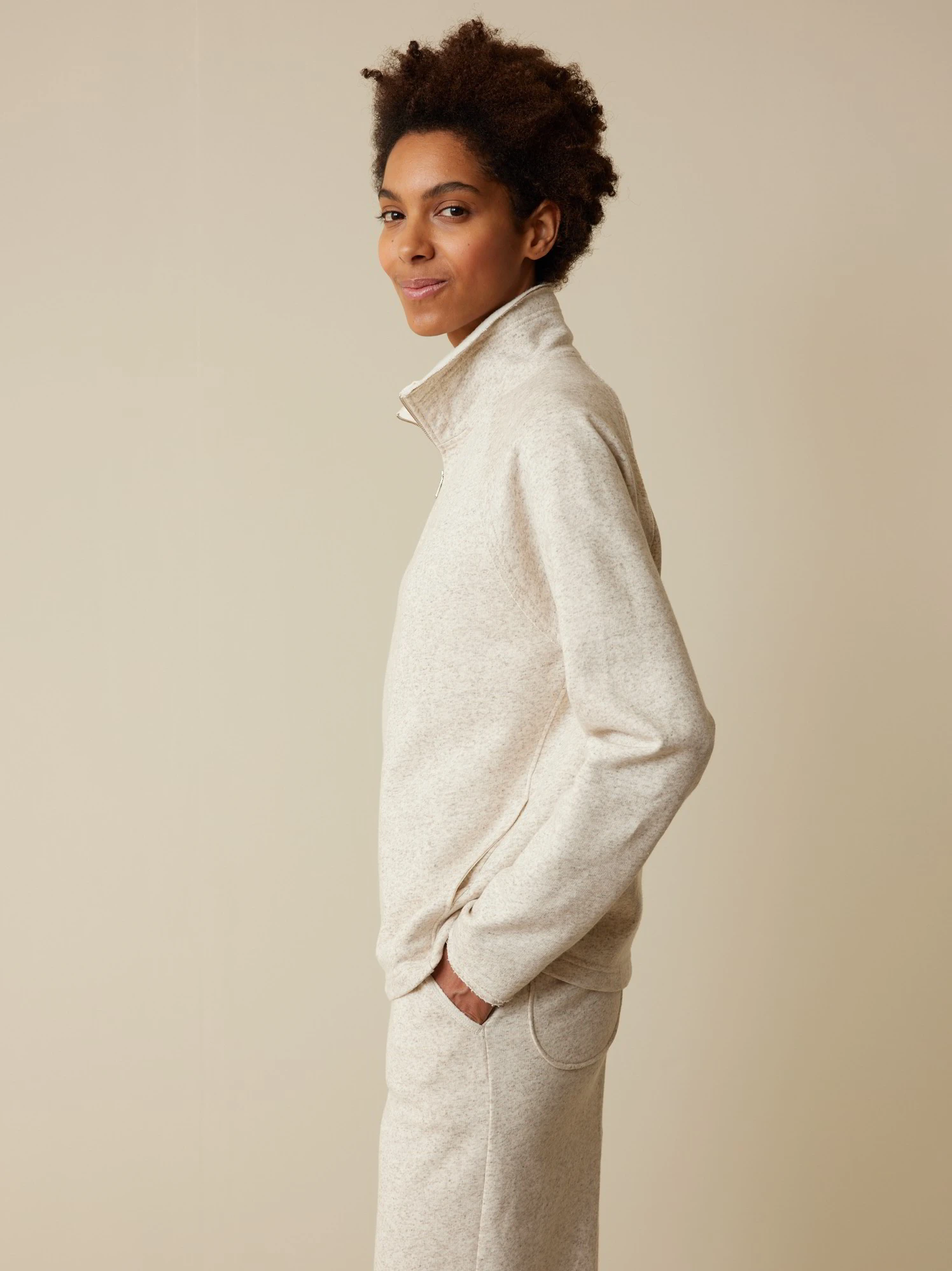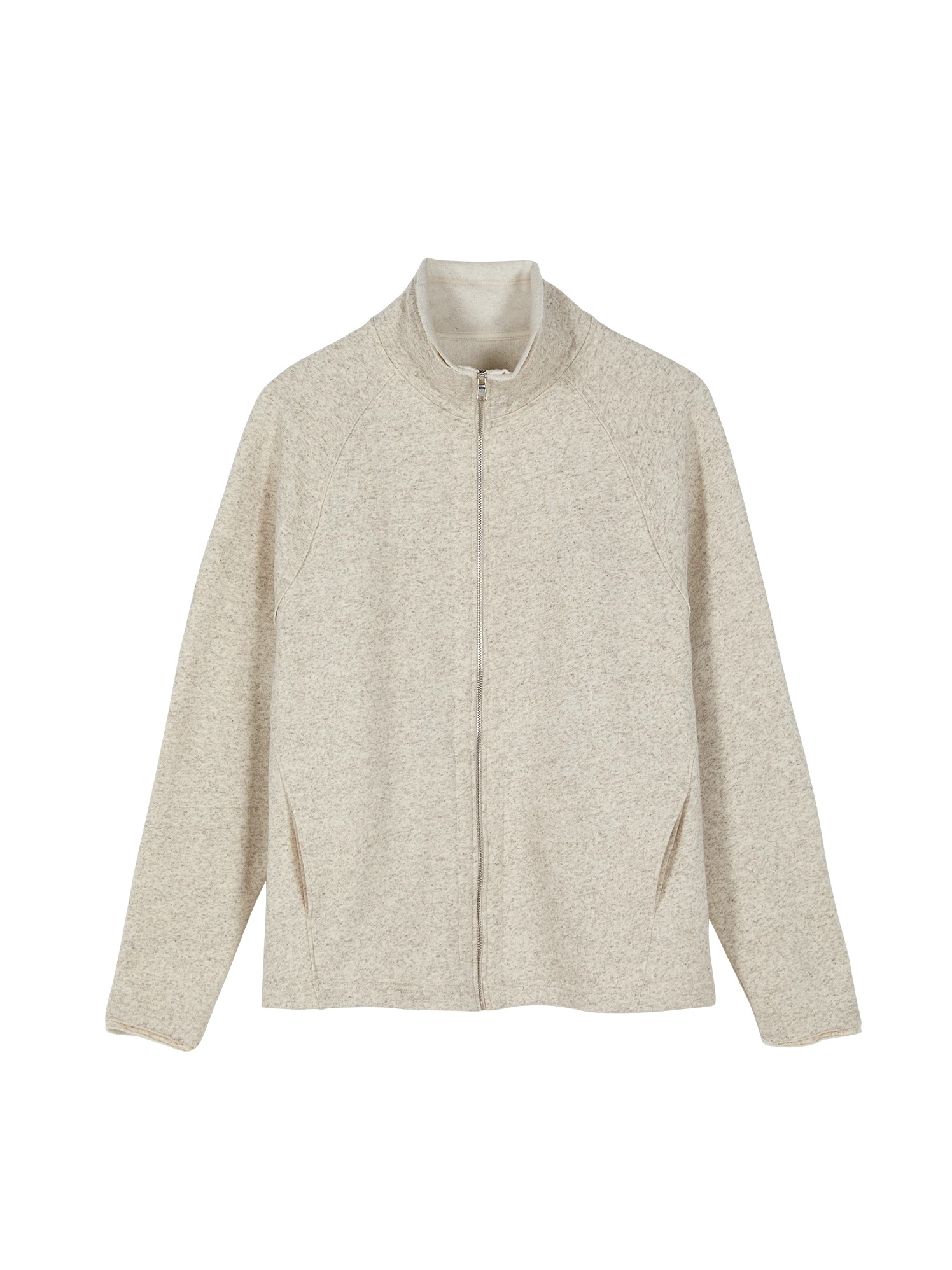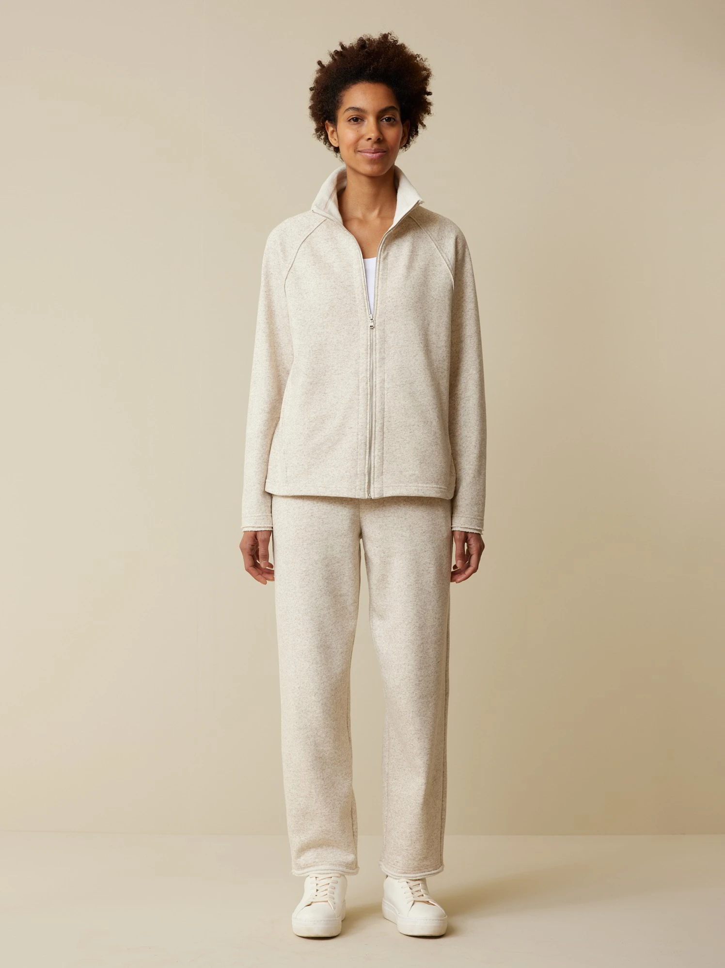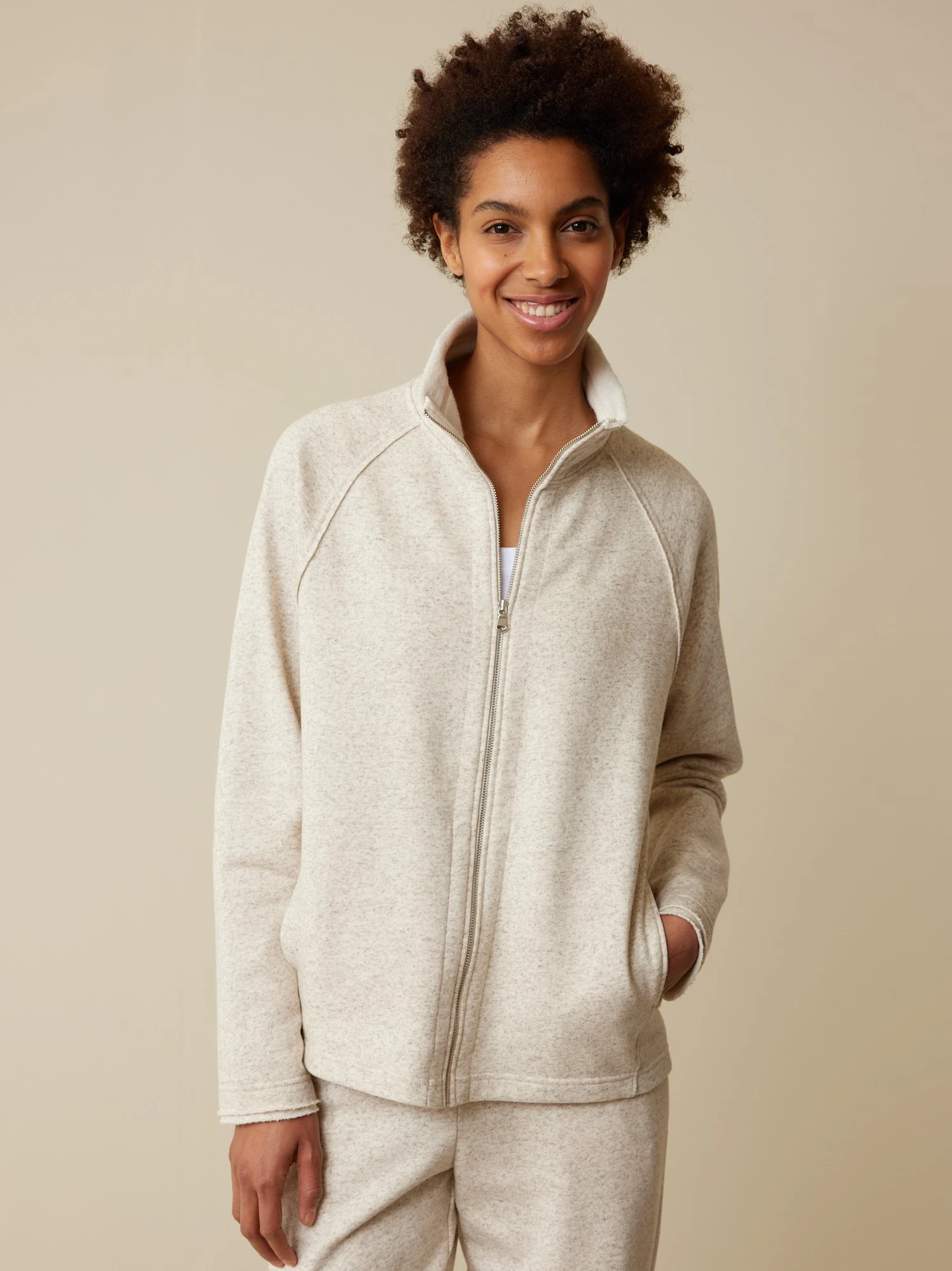 Für den Übergang oder kühle Abende: ungefärbte Langarm-Sweatjacke in kuscheliger Fleece-Qualität. Die leicht angerauhte Innenseite der Jacke aus Baumwolle und Hanf spenden hohen Tragekomfort. Modische Highlights setzen die schrägverlaufenden Teilungsnähten inklusive integrierten Eingriffstaschen. Weitere Details: Reißverschluss, lange Raglanärmel und Rippbündchen am Saum sowie an den Ärmelabschlüssen.