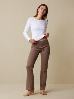 Geschmeidige Jazzpants in neuer Interlock-Qualität. Weiche Baumwolle sorgt für angenehmen Tragekomfort, ein hoher Bund mit schmalem Gummiband für guten Halt. Abgerundet wird das Modell mit einem lockeren Schnitt, wodurch die Hose besonders gemütlich erscheint. Als besonderes Detail überzeugen leicht ausgestellte Hosenbeine und Flatlocknähte entlang der Seitennähte sowie der Mittelnaht.
