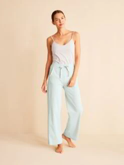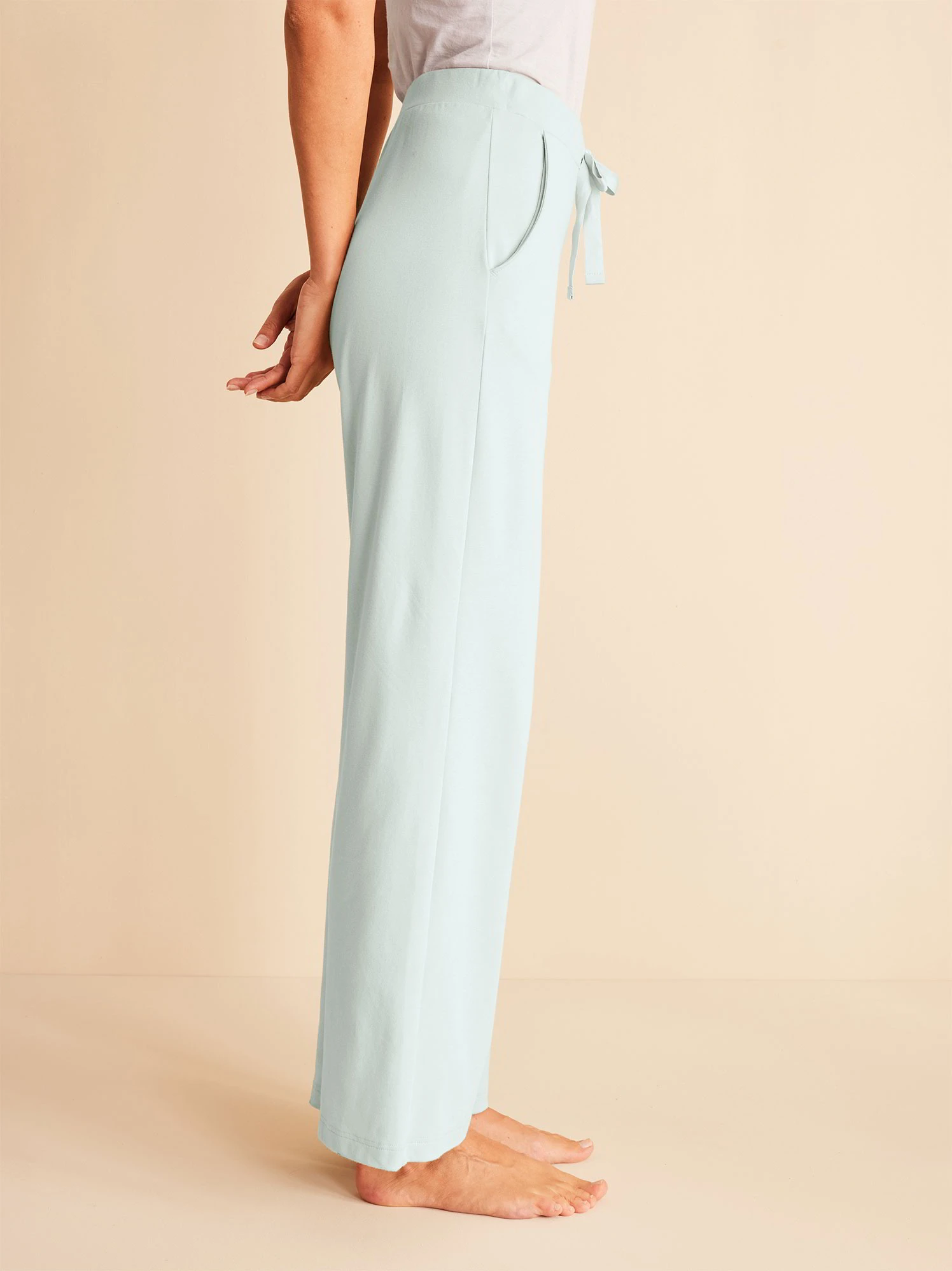 Die Hose sorgt für ein besonders sanftes Gefühl auf der Haut und überzeugt mit einer puristischen Optik. Das Modell mit dem weiten Bein hat zwei seitliche Eingriffstaschen und einen Kordelzug mit hochwertigem Satinband am Bund.