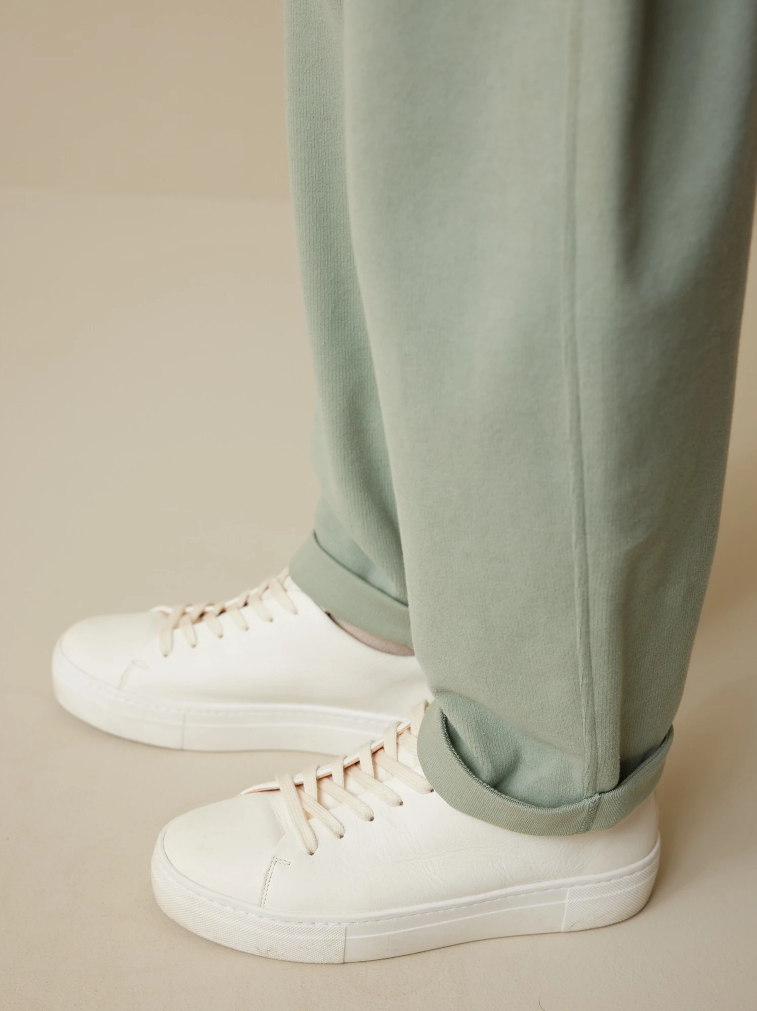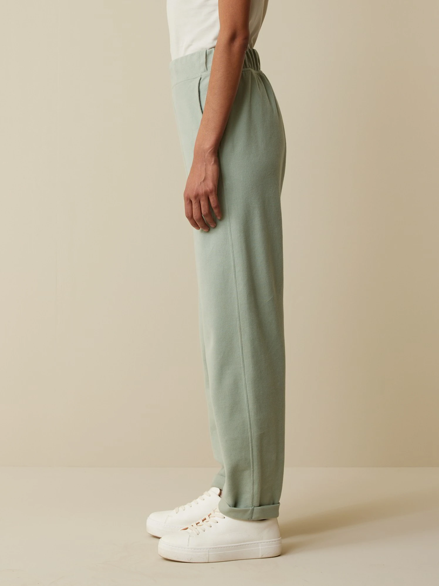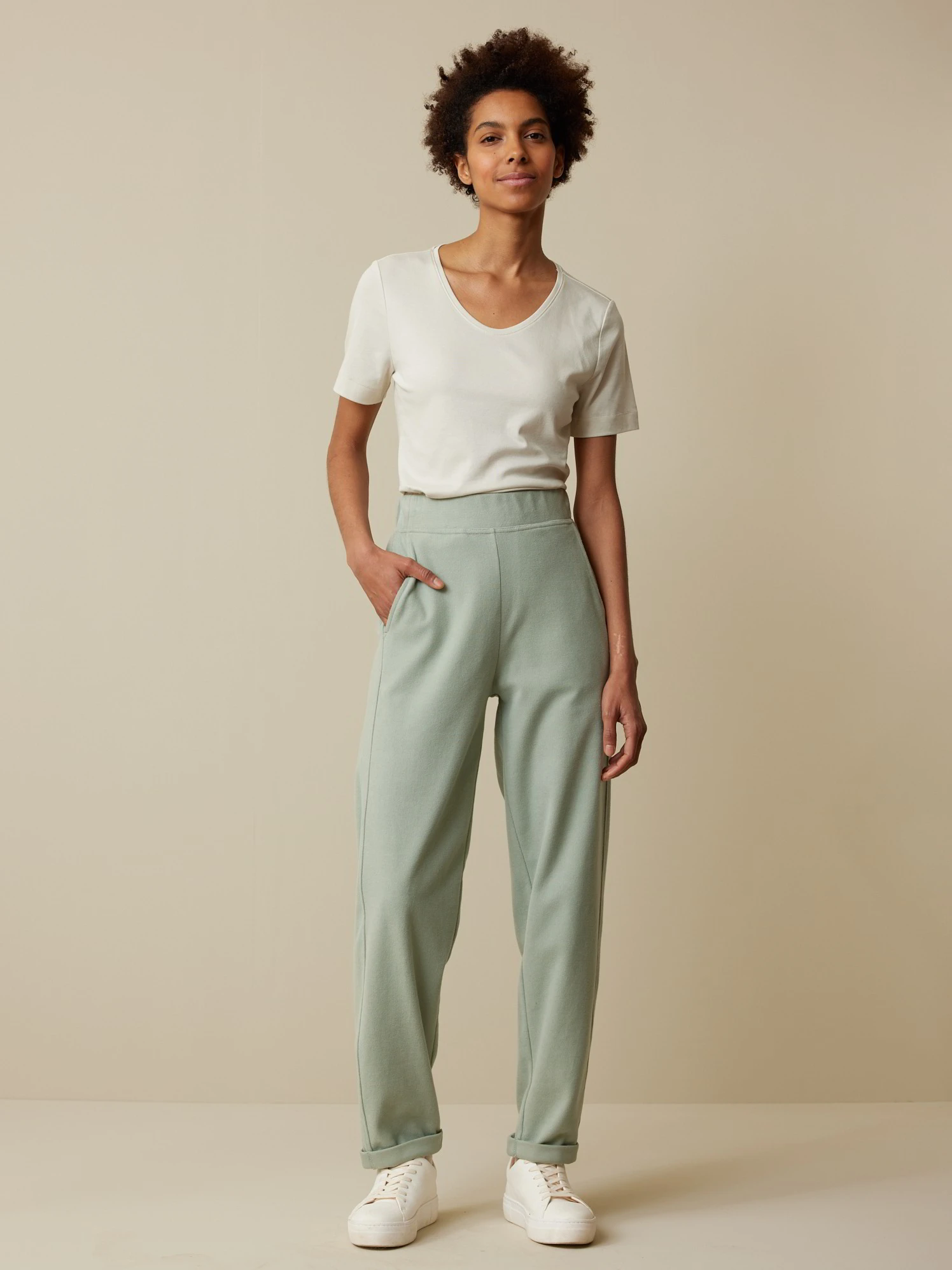 Weiche Joggpants in gebrushter Jersey-Qualität. Die Baumwoll-Hose mit der leicht aufgerauhten Ripp-Struktur auf der Außenseite hat einen eingearbeiteten Gummizug im Rückenbund, zwei seitliche Eingriffstaschen und eine aufgesetzte Gesäßtasche. Abgerundet wird das Modell mit einem fixierten Umschlag am Beinsaum.