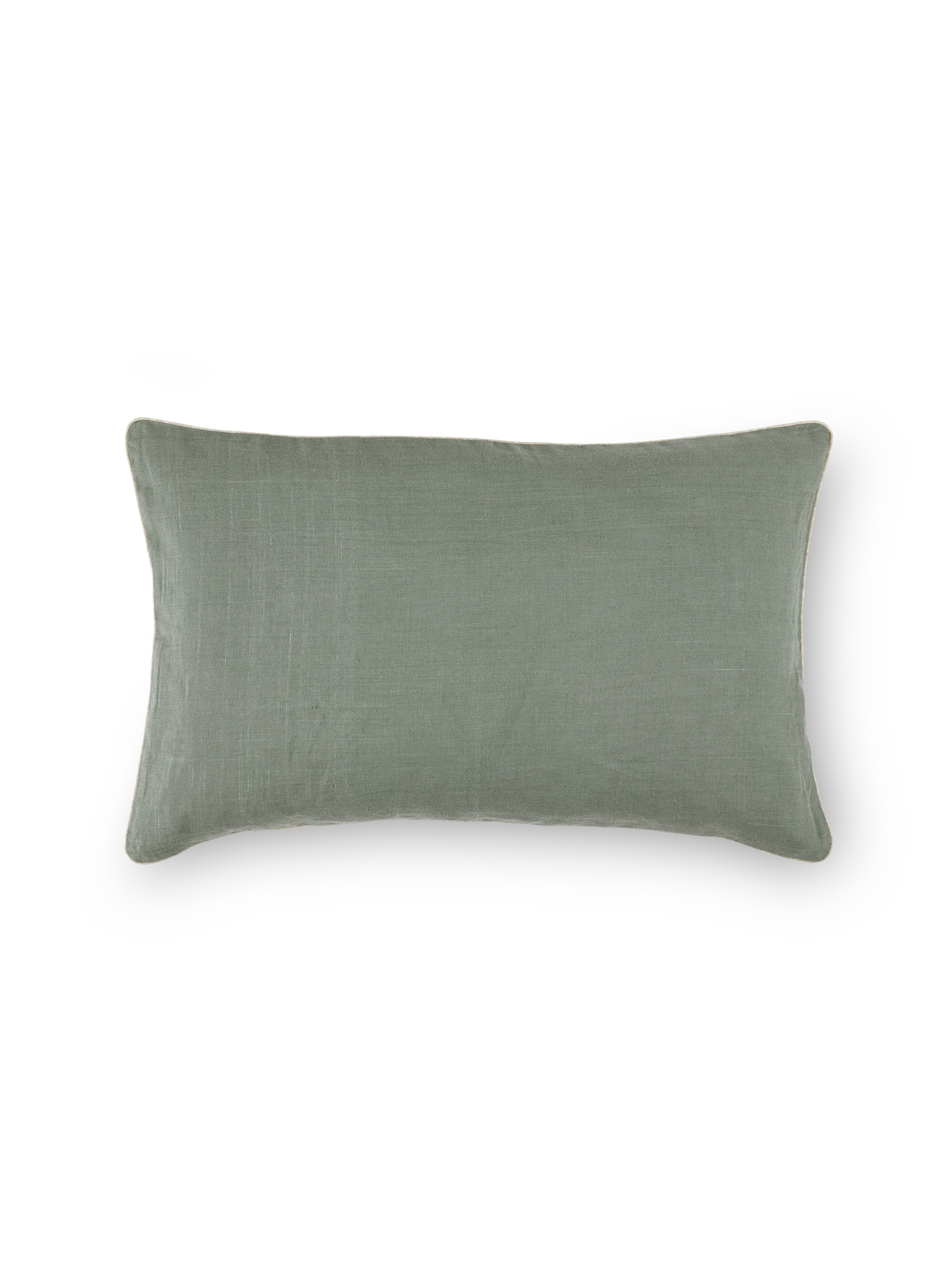 Hergestellt aus 100 % Leinen, in den Farbgebungen Blaugrau oder Graugrün. Kissenüberzüge mit Paspelband in Kontrastfarbe Natur umsäumt. Versetzter, sichtbarer Knopfverschluss mit Steinnussknöpfen in Natur.