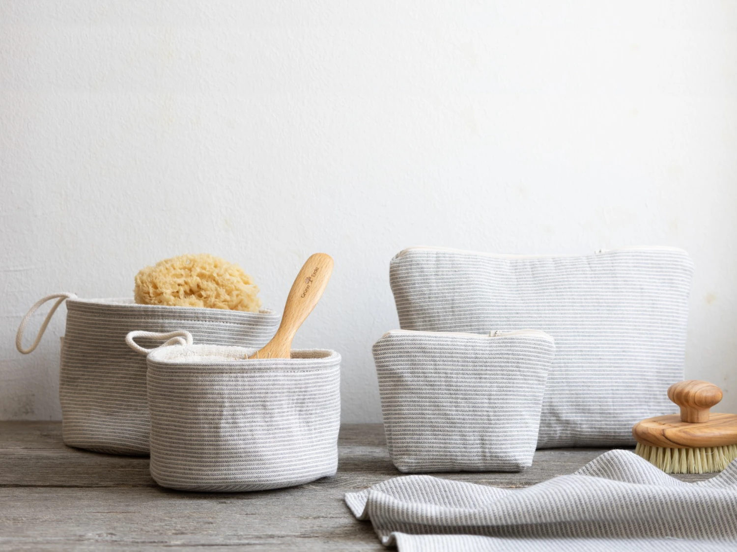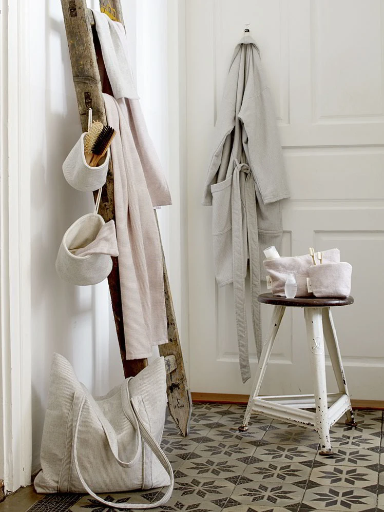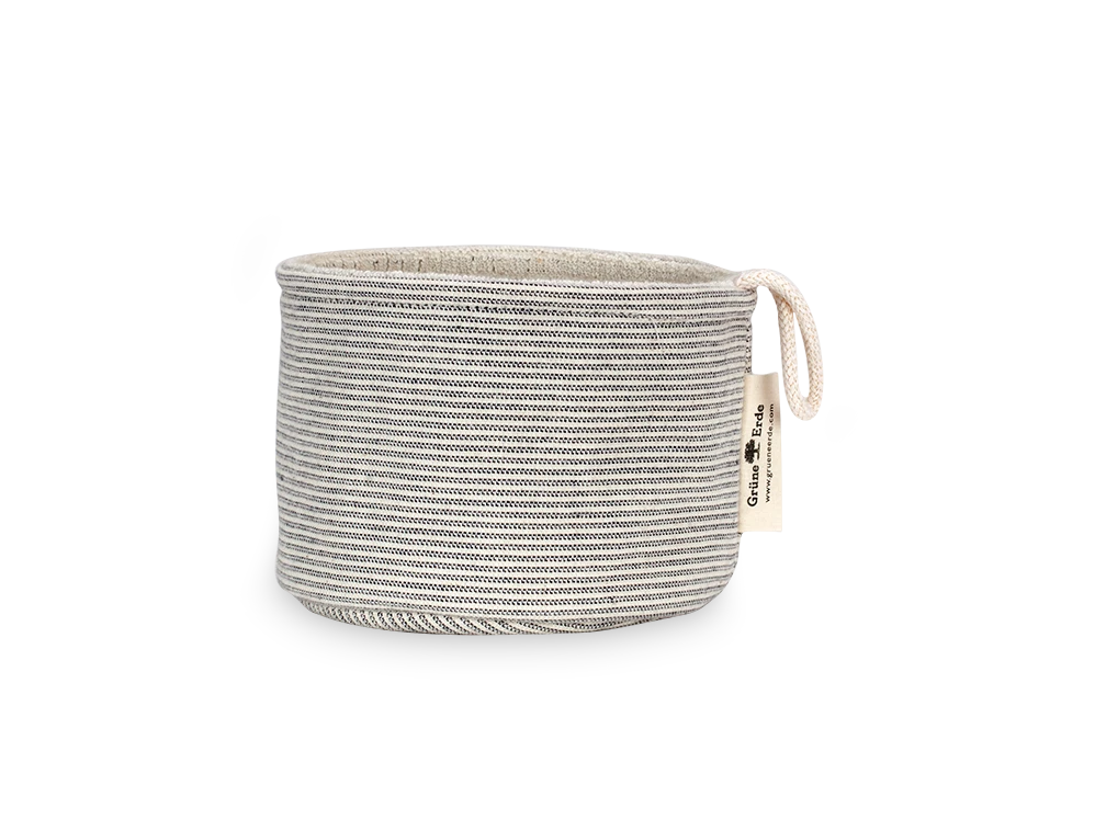 Badezimmerkorb in zwei Größen, aus reiner, weicher Bio-Baumwolle. Baumwolle aus kbA. Elegante schmale Streifen durch Fertigung in technisch aufwändiger Jacquard-Bindung. Einseitiges Frottier mit klassischen Schlingen nur auf einer Seite. Hautfreundlich, weicher Griff und sehr saugfähig. In zwei Farben erhältlich. Nach dem strengen Global Organic Textile Standard für ökologische Textilien in einer Waldviertler Weberei gefertigt.