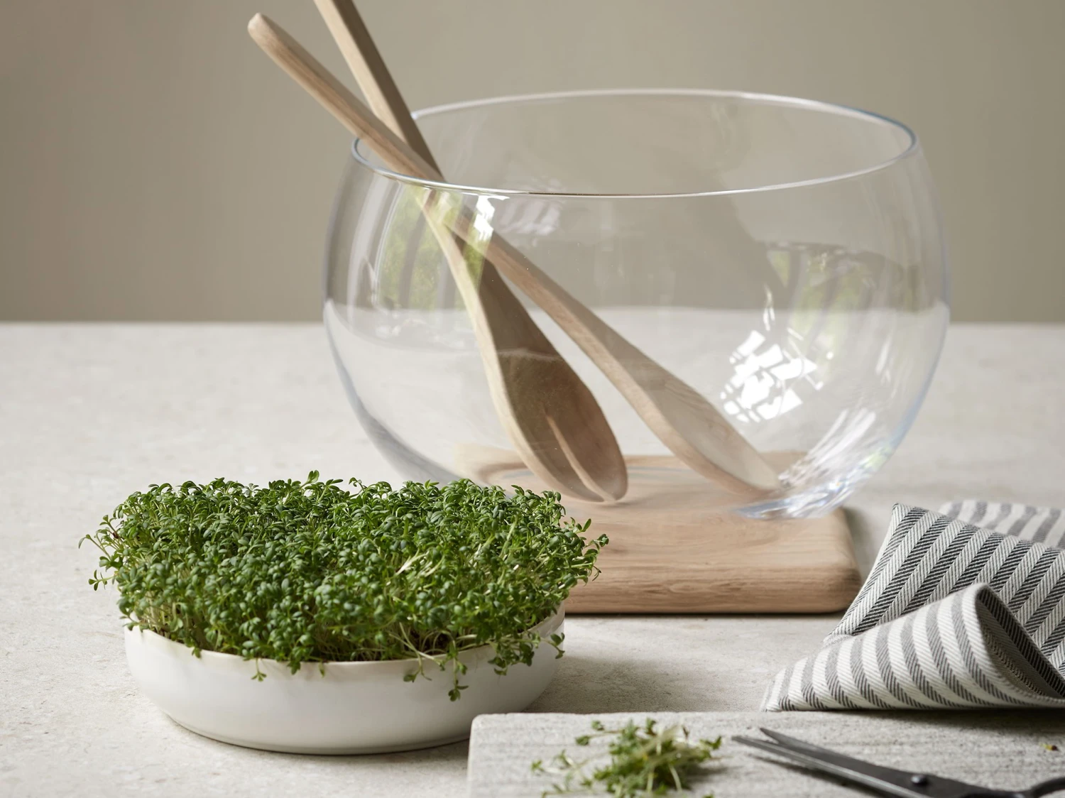 Ein Küchenklassiker für Kresseliebhaber: Teller aus weißer Terracotta, einmal gebrannt, glasiert, wasserdicht. Die Terracotta, ohnehin ein ökologischer Werkstoff natürlichen Ursprungs, enthält 10 % Schamotte, also rezyklierte Keramik.