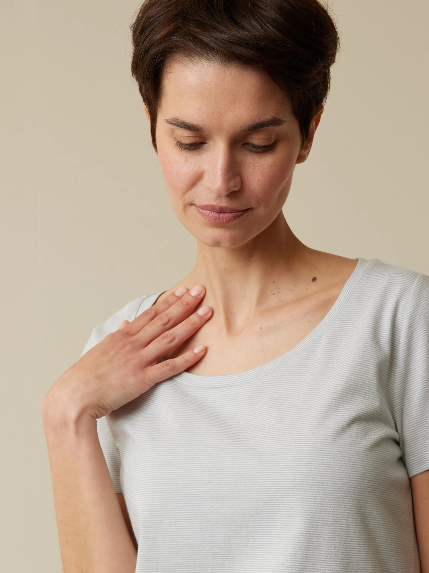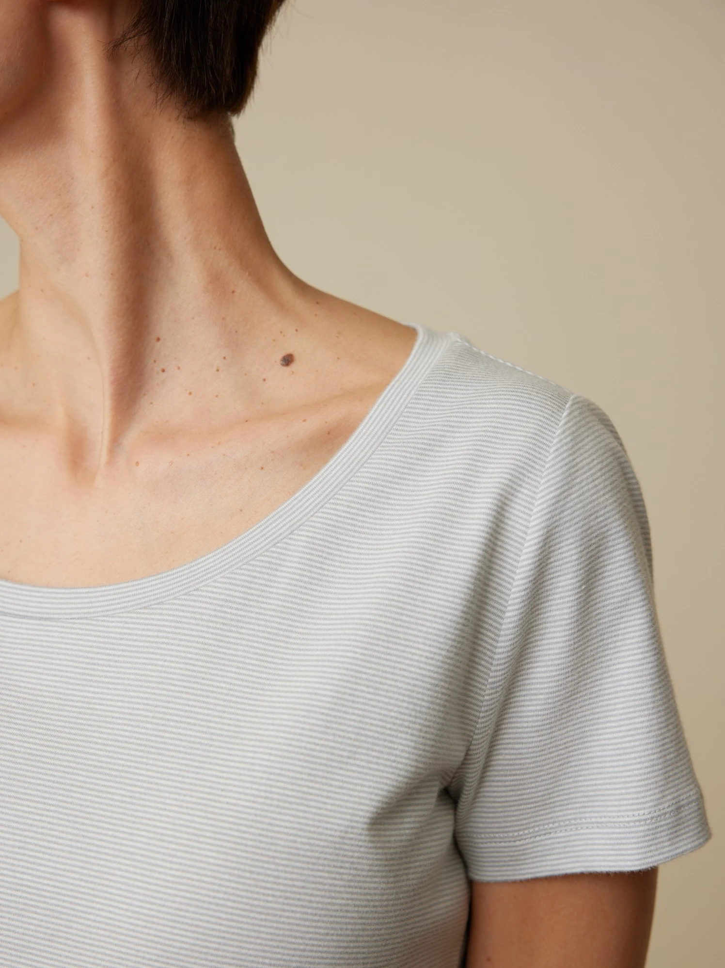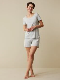 Ein natürliches Basic für die Nacht: Das figurumspielende Schlafshirt aus weichem Baumwoll-Jersey überzeugt mit einer feinen Ringel-Dessinierung. Das hochwertige Naturmaterial und der unkomplizierte Schnitt – mit Rundhalsausschnitt und kurzen Ärmeln – bieten einen leichten Tragekomfort.