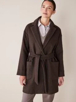 Dieser edle Mantel ist besonders in der kühleren Jahreszeit ein zeitloser Begleiter! Er wird aus ungefärbtem Yakhaar bei unserem Partnerbetrieb in der Mongolei gefertigt und überzeugt mit seiner Zweifarbigkeit: Die Innenseite besticht mit einem hellen und die Außenseite mit einem mittleren Braunton. Das Modell mit dem Reverskragen hat zwei aufgesetzte Taschen, einen losen Bindegürtel und kann mit zwei Druckknöpfe verschlossen werden.