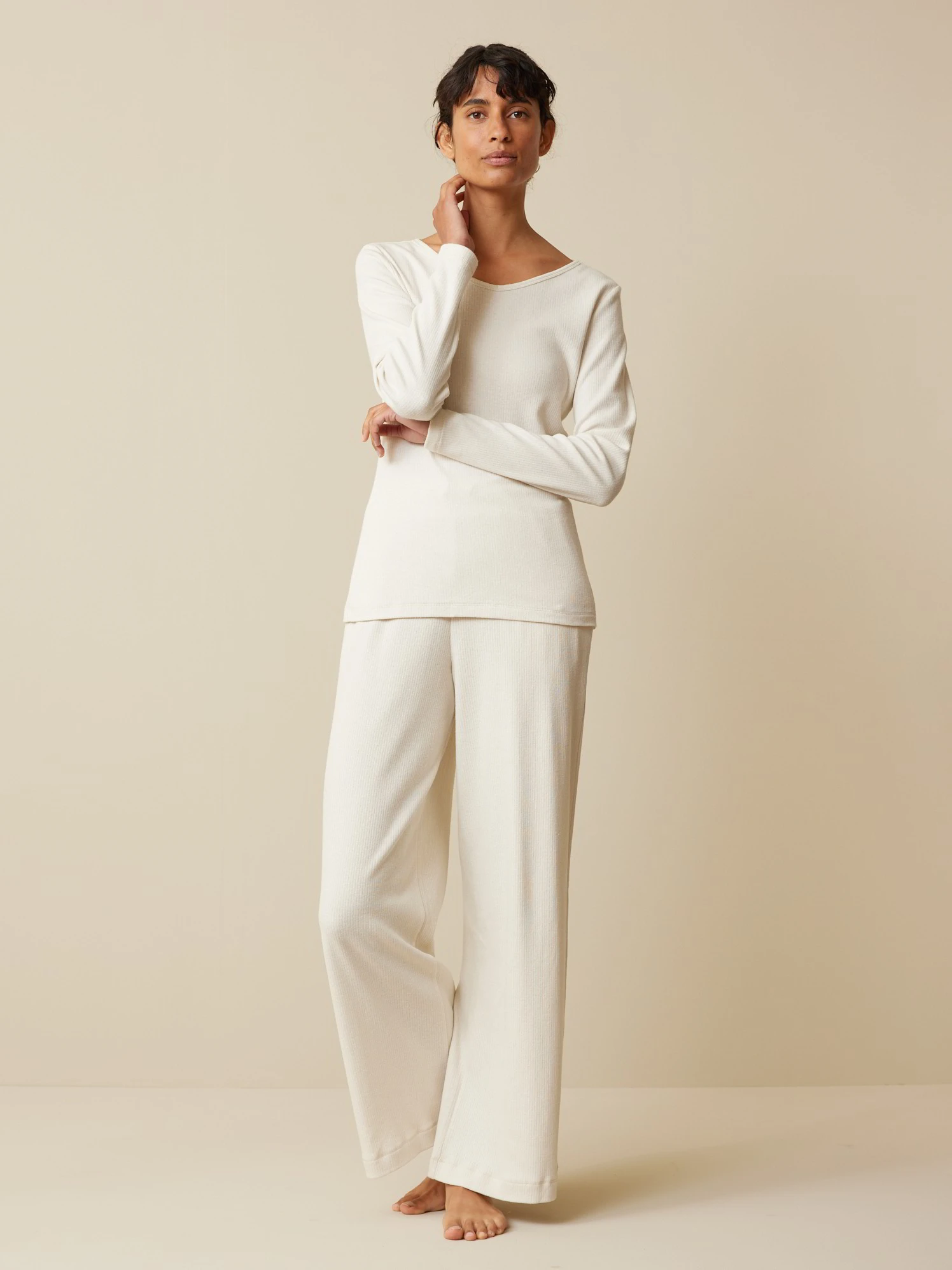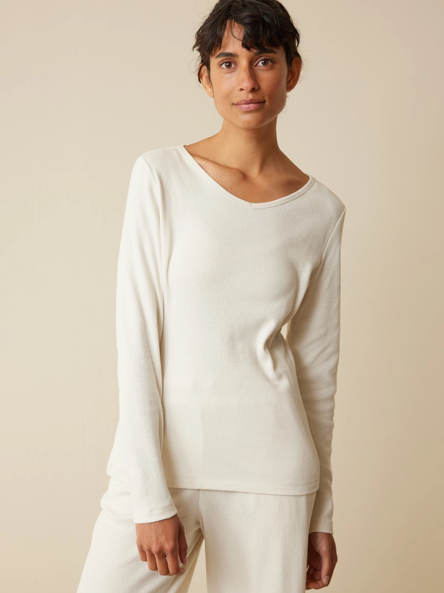 Anschmiegsames Modell in feiner Ripp-Struktur. Das unkompliziertes Basic-Kleidungsstück sorgt dank des stabilen Interlocks für ein angenehmes Tragegefühl. Mit abgerundetem V-Ausschnitt und Zierband am Saumabschluss. Die Kombination aus weicher Baumwolle und glattem Leinen ist leicht und angenehm auf der Haut.