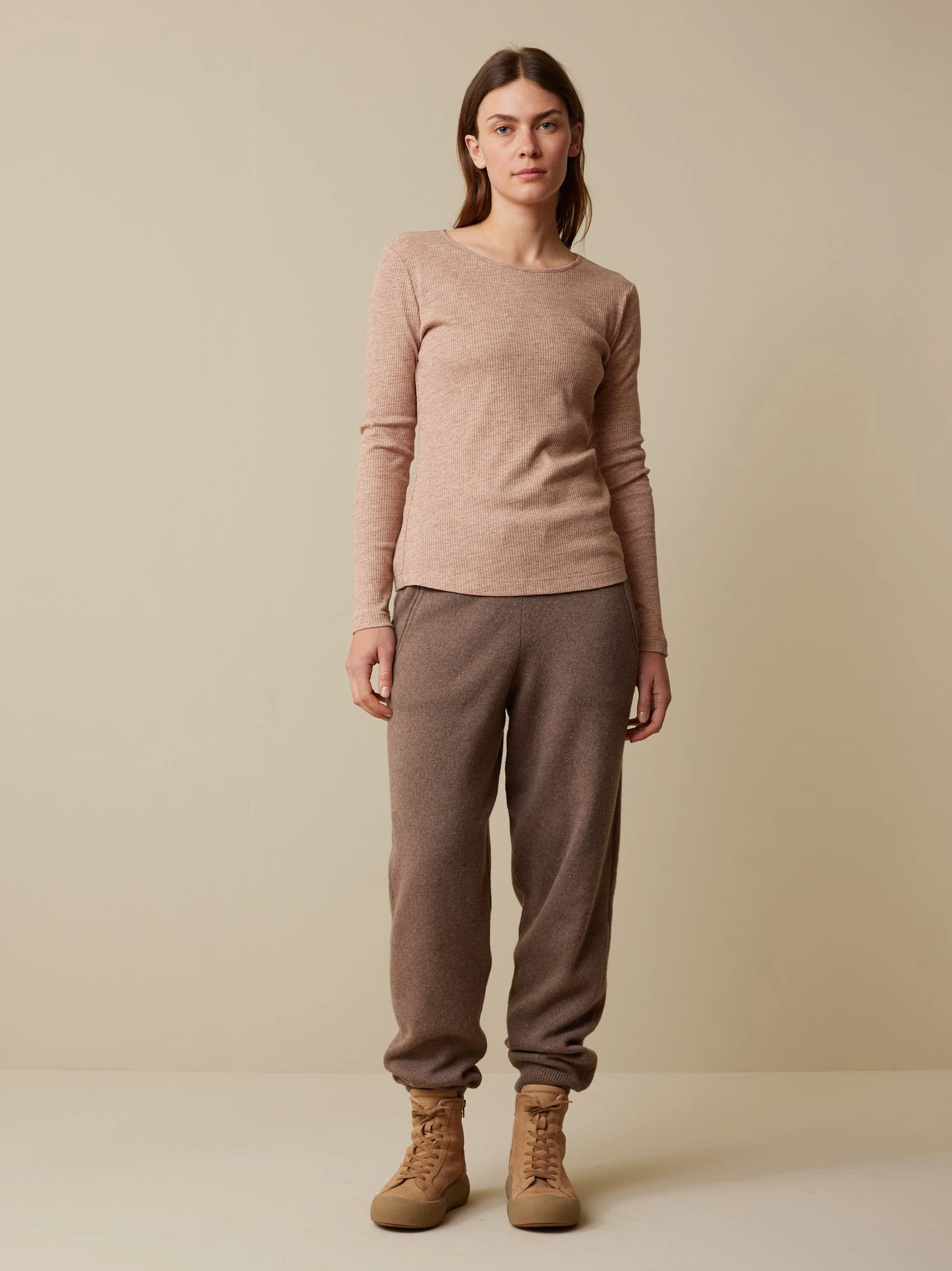 Zeitloses Langarm-Shirt mit feiner Ripp-Struktur, abgerundet mit Rundhalsausschnitt und langen Ärmeln. Die hautfreundliche Kombination aus weicher Baumwolle und temperaturausgleichender Wolle ist die perfekte Mischung für die ersten kalten Tage. Figurumspielend geschnitten, vielseitig kombinierbar – für zuhause oder unterwegs.