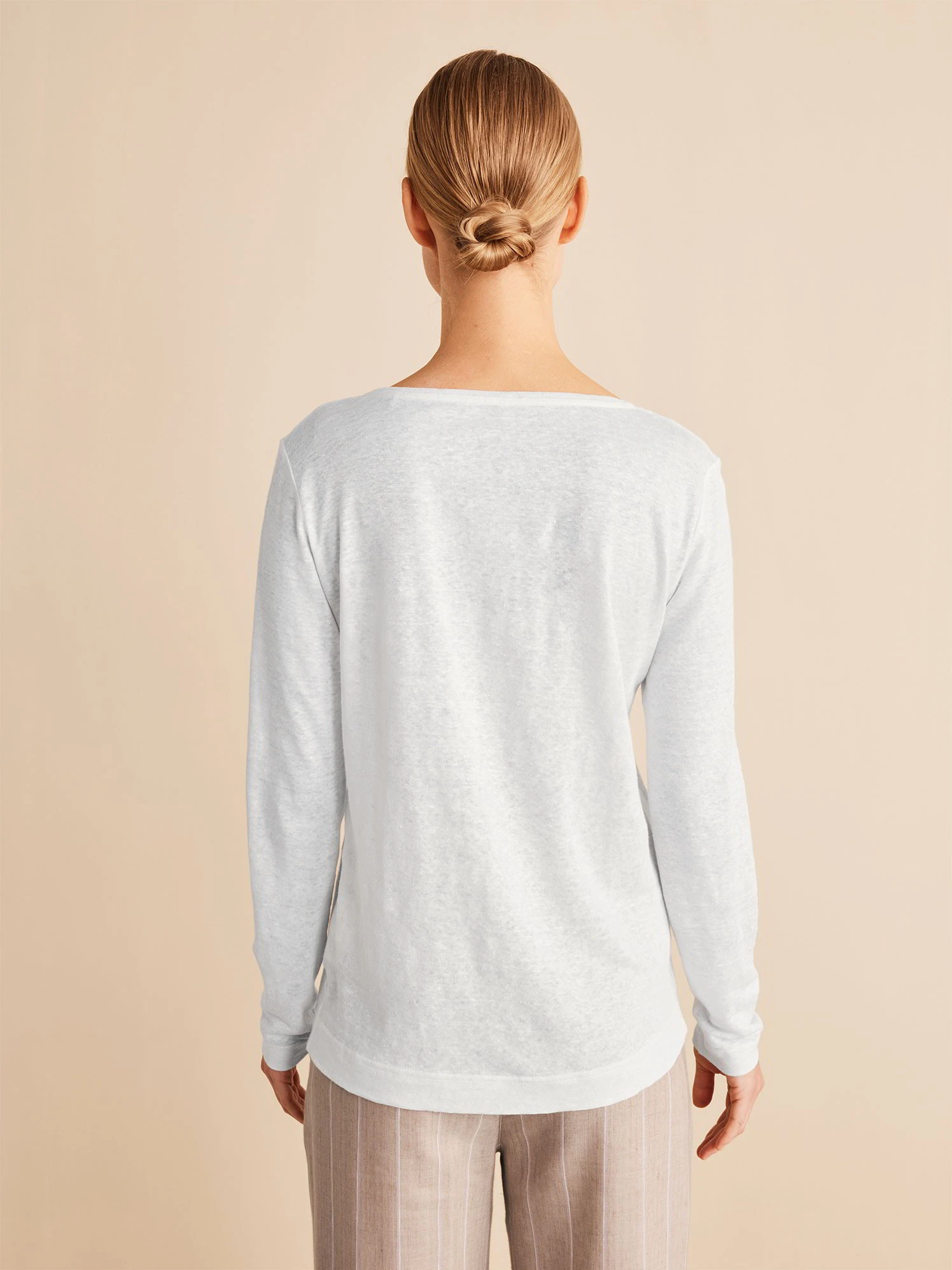 Das figurumspielende Langarmshirt aus edlem Leinen kbA entsteht bei unserem Partnerbetrieb und sorgt stets für ein angenehm-leichtes Tragegefühl. Das Modell überzeugt mit einer zeitlosen Farbe, einem angenehm-weichen Griff und einem unkomplizierten Schnitt. Mit einem abgerundeten V-Ausschnitt und Zierstich am Saum sowie Ärmelsaum.