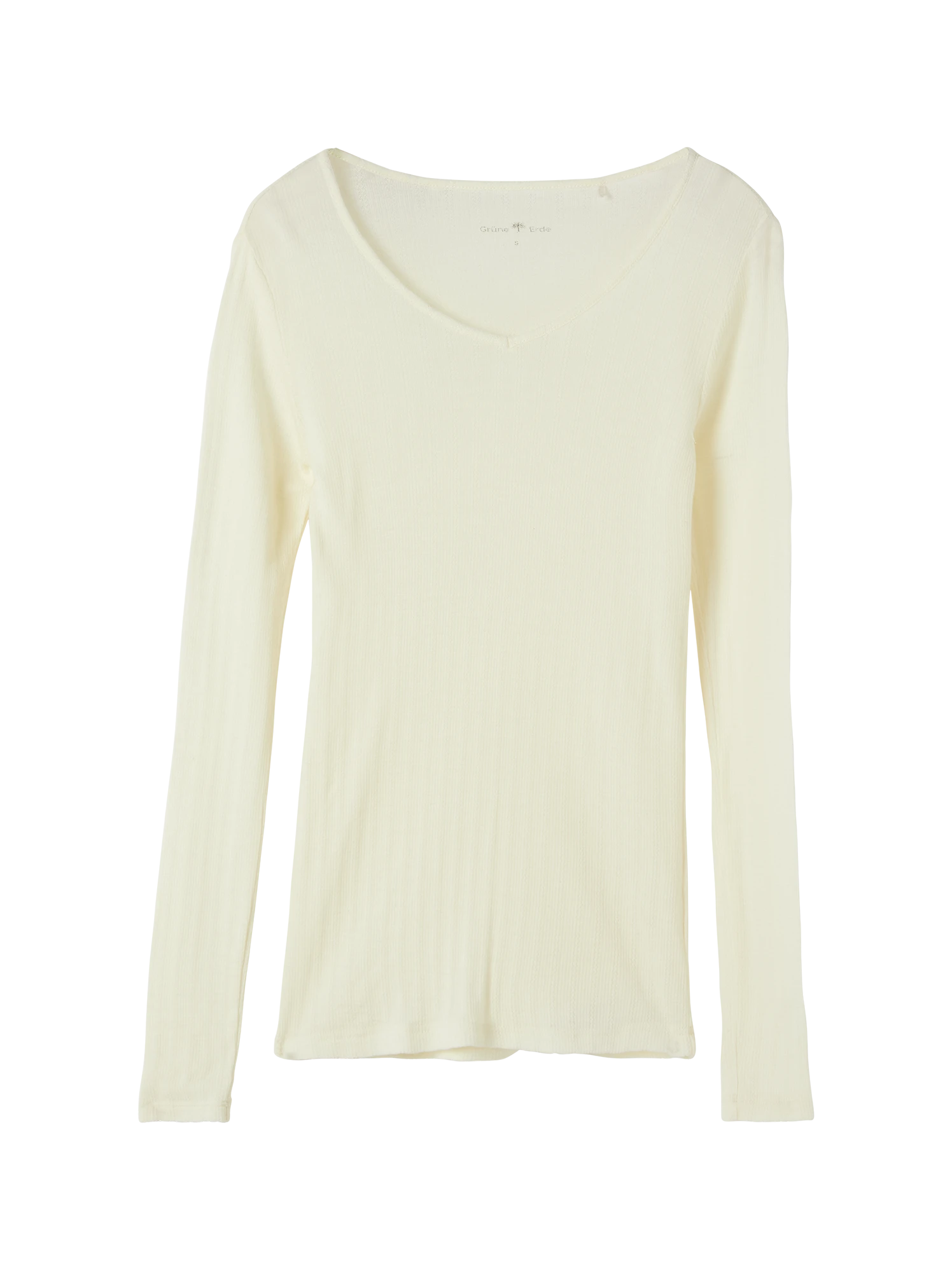 Eleganter Feinstrick aus wertvoller Wolle kbT: Das figurbetonte Shirt mit der feinen Rippstruktur und der zarten Pointelle-Qualität wird garantiert ein beliebtes Basic. Mit langen Ärmeln und abgerundetem V-Ausschnitt.