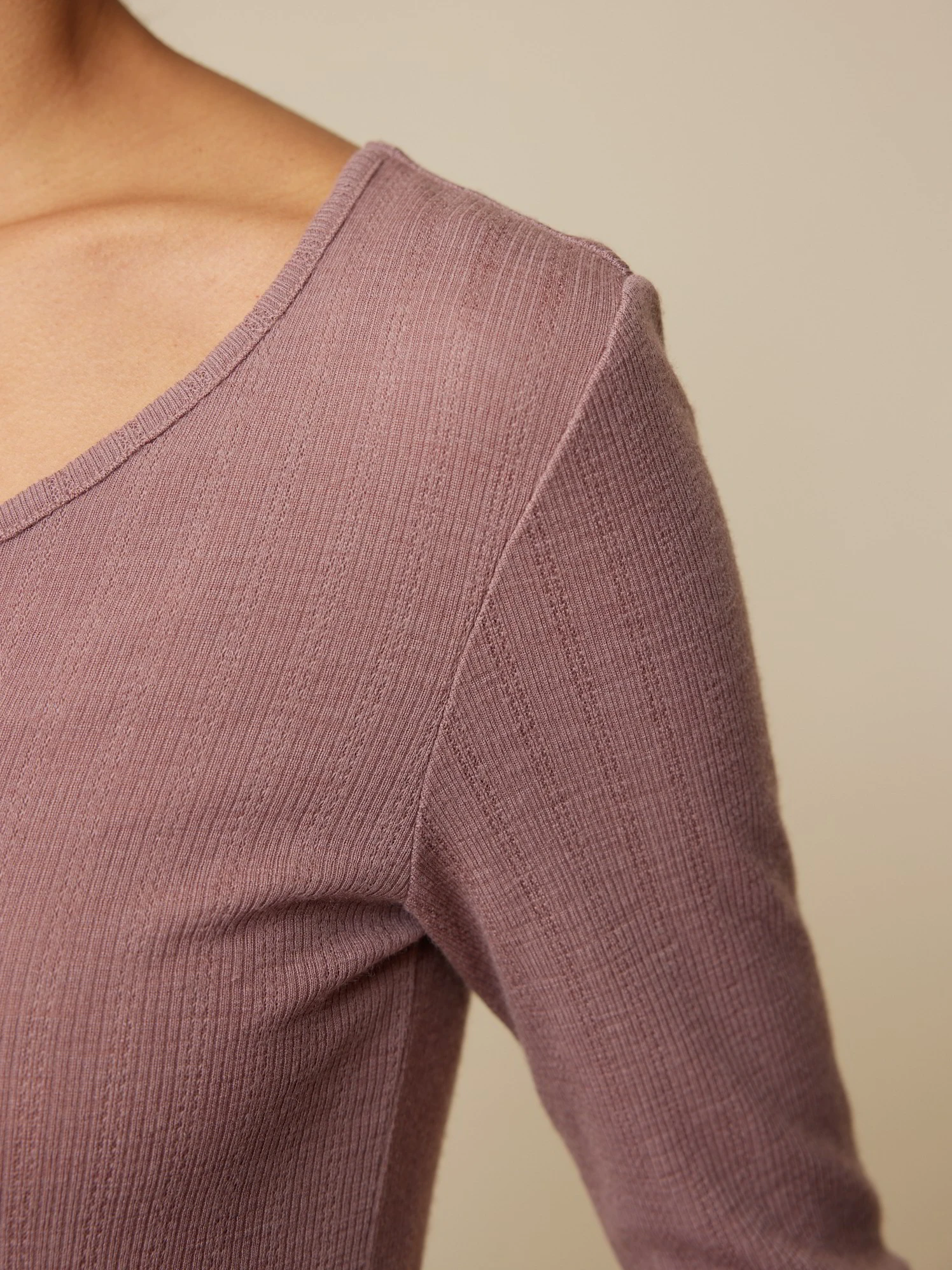 Eleganter Feinstrick aus wertvoller Wolle kbT: Das figurbetonte Shirt mit der feinen Rippstruktur und der zarten Pointelle-Qualität wird garantiert ein beliebtes Basic. Mit langen Ärmeln und abgerundetem V-Ausschnitt.