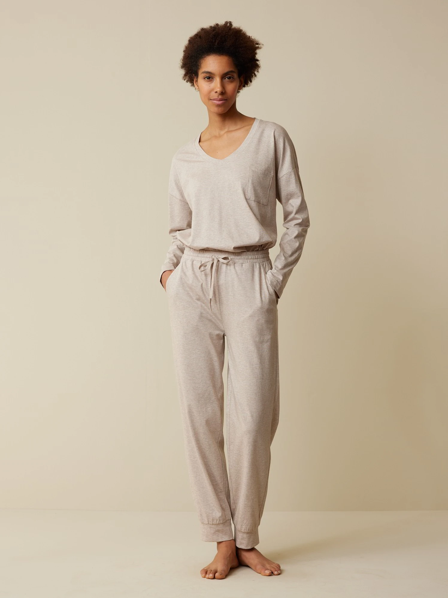 Knöchellange Schlafhose aus besonders hautfreundlicher Baumwolle: bequem, sanft zur Haut und weich im Griff. Das Unterteil in Single-Jersey-Qualität hat einen Kordelzug am Gummibund, zwei seitliche Eingriffstaschen und Bündchen am Beinsaum.