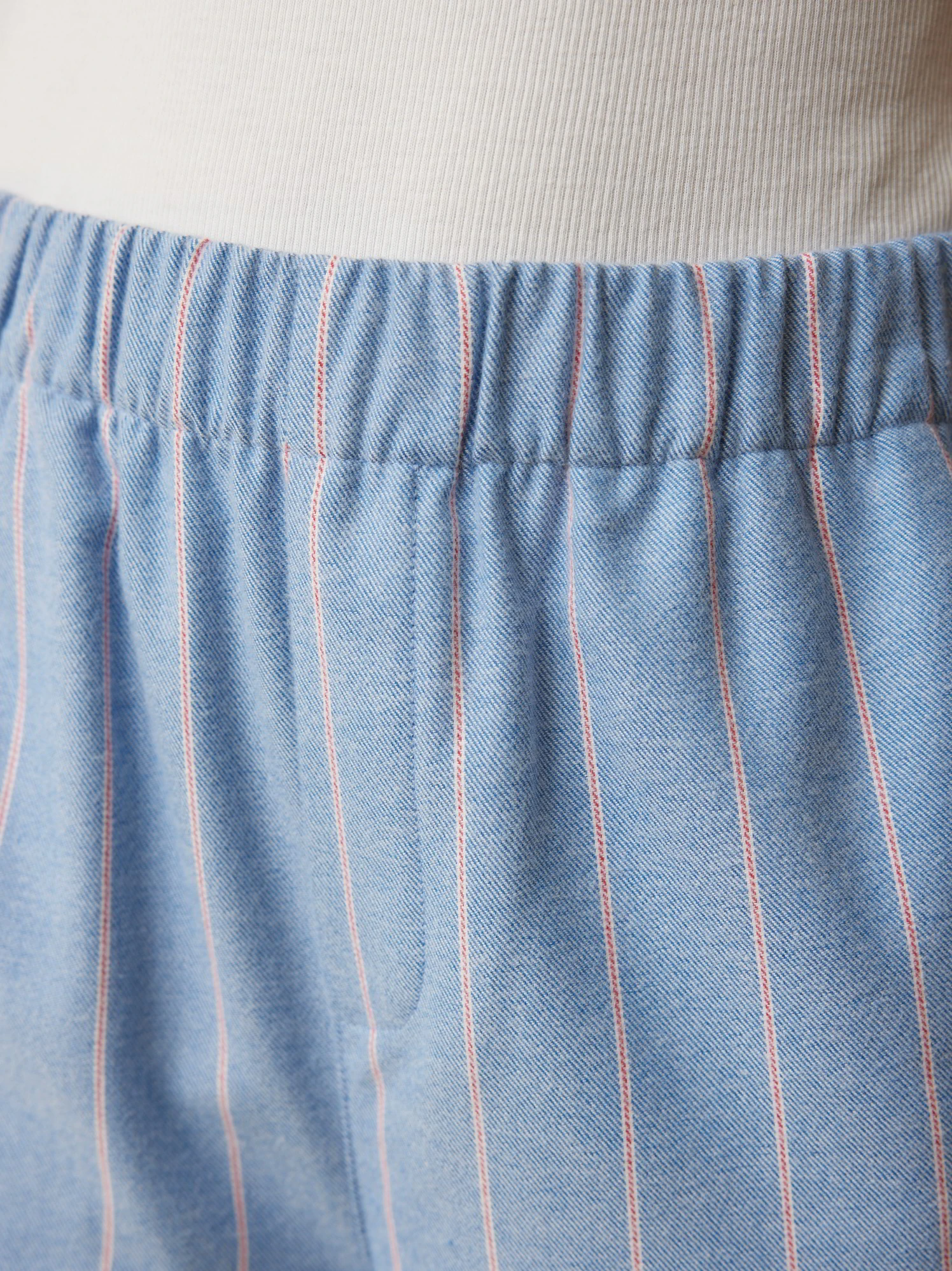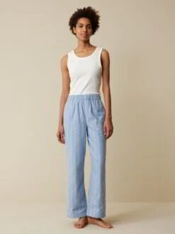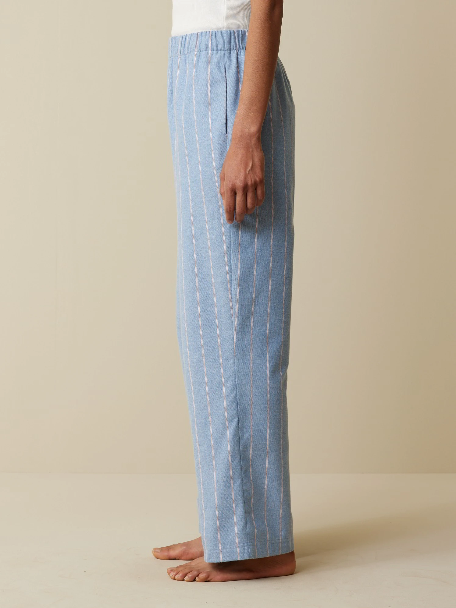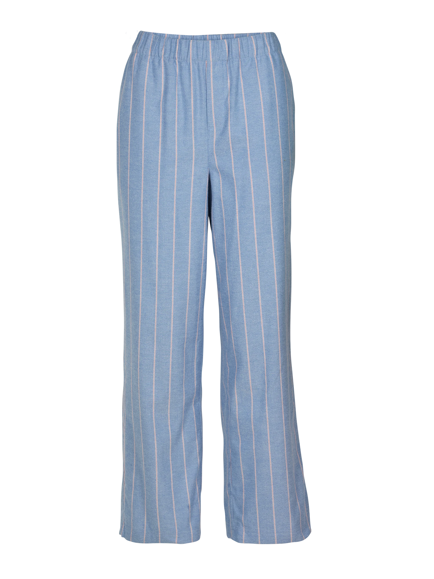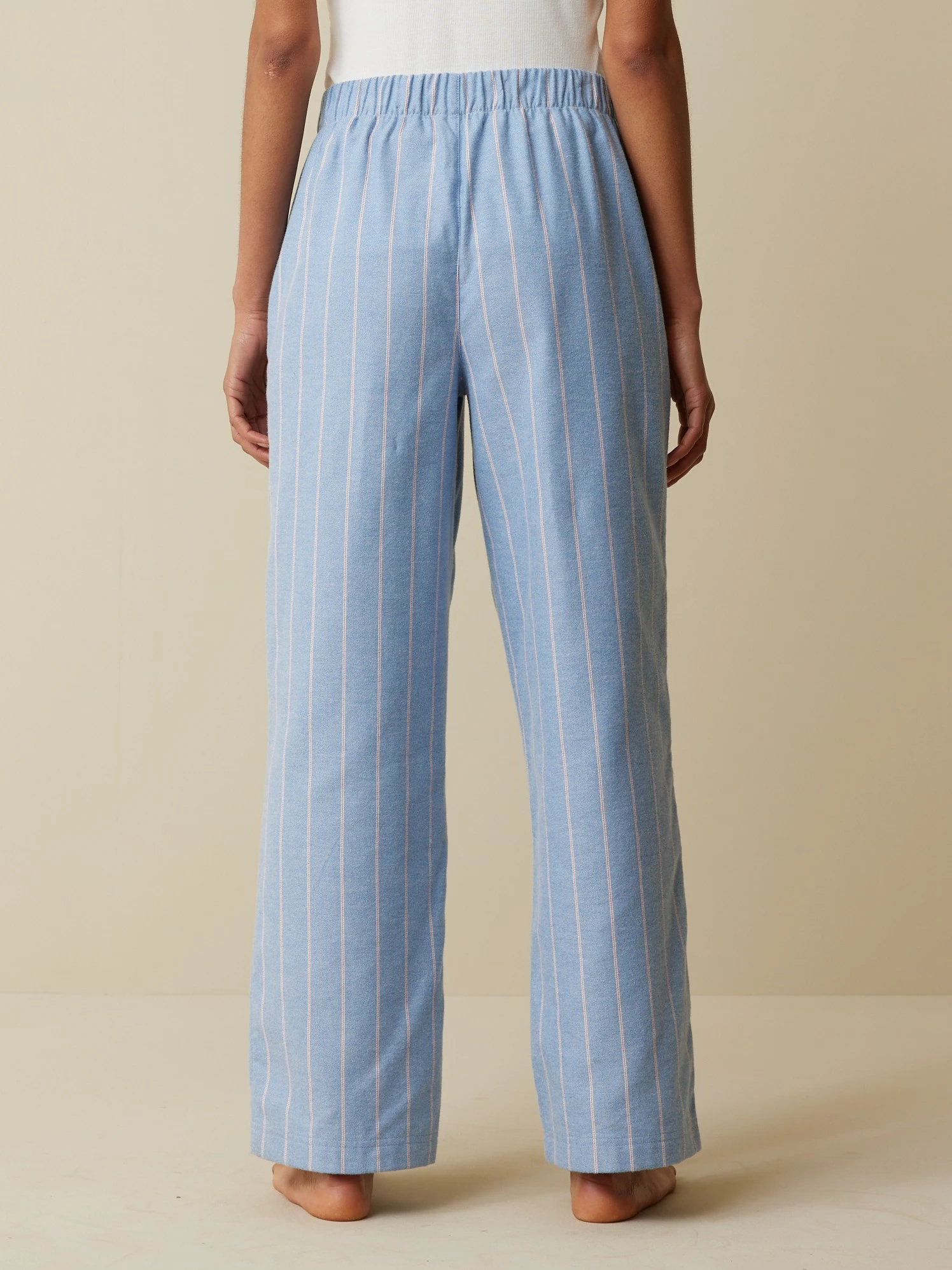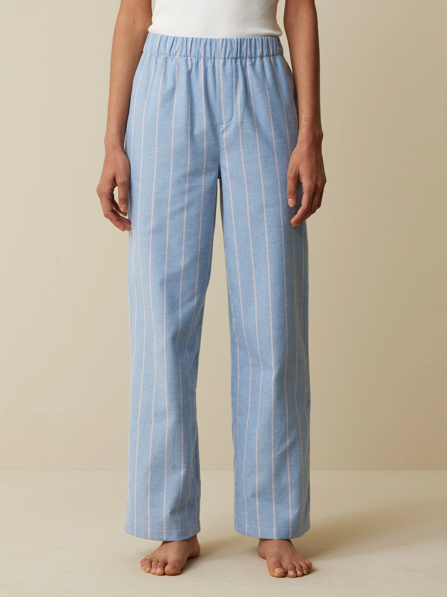 Stilvolle Pyjama-Hose in klassischer Form: Weiche Edelflanell-Qualität und eine feine Streifen-Dessinierung runden die gerade Silhouette harmonisch ab. Die aufgerauhte Baumwoll-Oberfläche sorgt für ein besonders sanftes Gefühl auf der Haut. Das Modell mit dem weiten Bein besticht mit einem Gummizug im Bund und zwei Eingriffstaschen.
