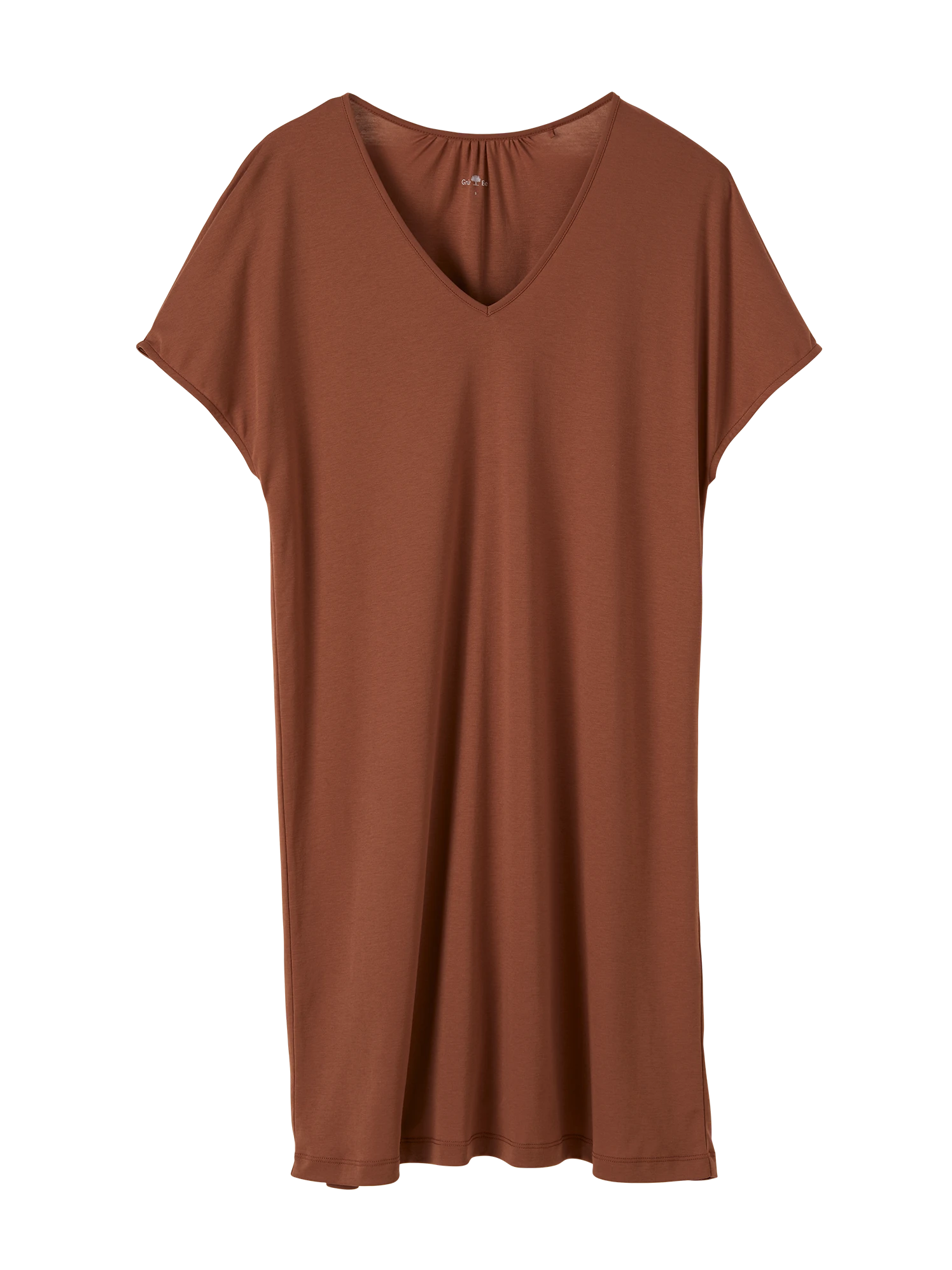 Locker geschnittenes Nachthemd aus fließender Jersey-Qualität. Die weiche Baumwolle umspielt sanft die Haut und sorgt für ein angenehmes Gefühl während der Nacht. Mit V-Ausschnitt, überschnittenen Schulterpartien und zarter Raffung auf der Rückseite.