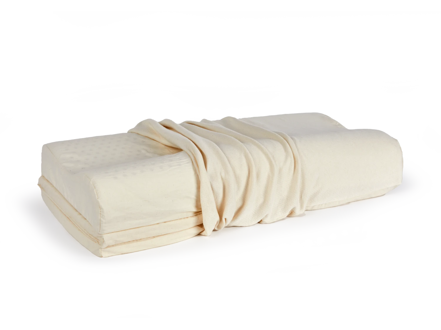 Bezüge: Jeder der 3 Naturlatexformteile ist in eine fixe, nicht abnehmbare Hülle aus 100 % Baumwolle eingenäht (Baumwolle kbA aus Kirgisistan).