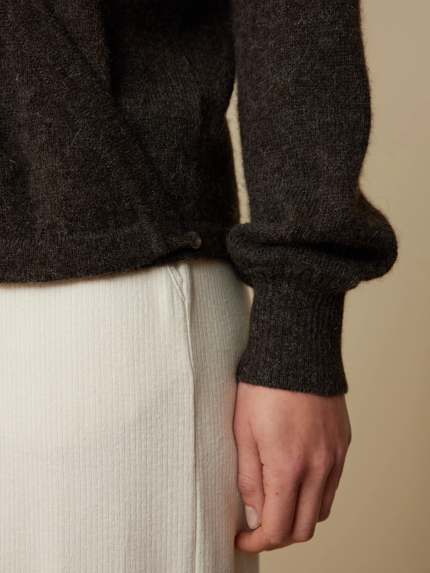Ein schönes Stück Natur, welches wir nur zu gern tragen. Dieses Kleidungsstück entsteht aus wertvoller Alpakawolle und wird in größter ökologischer Sorgfalt bei unserem Partnerbetrieb gefertigt. Die gesamte Wertschöpfung bleibt im Land der Rohfaser – fair gegenüber Mensch, Tier und Natur. Um die Langlebigkeit des Naturproduktes zu erhalten, empfehlen wir einen sorgsamen und wertschätzenden Umgang im alltäglichen Gebrauch.