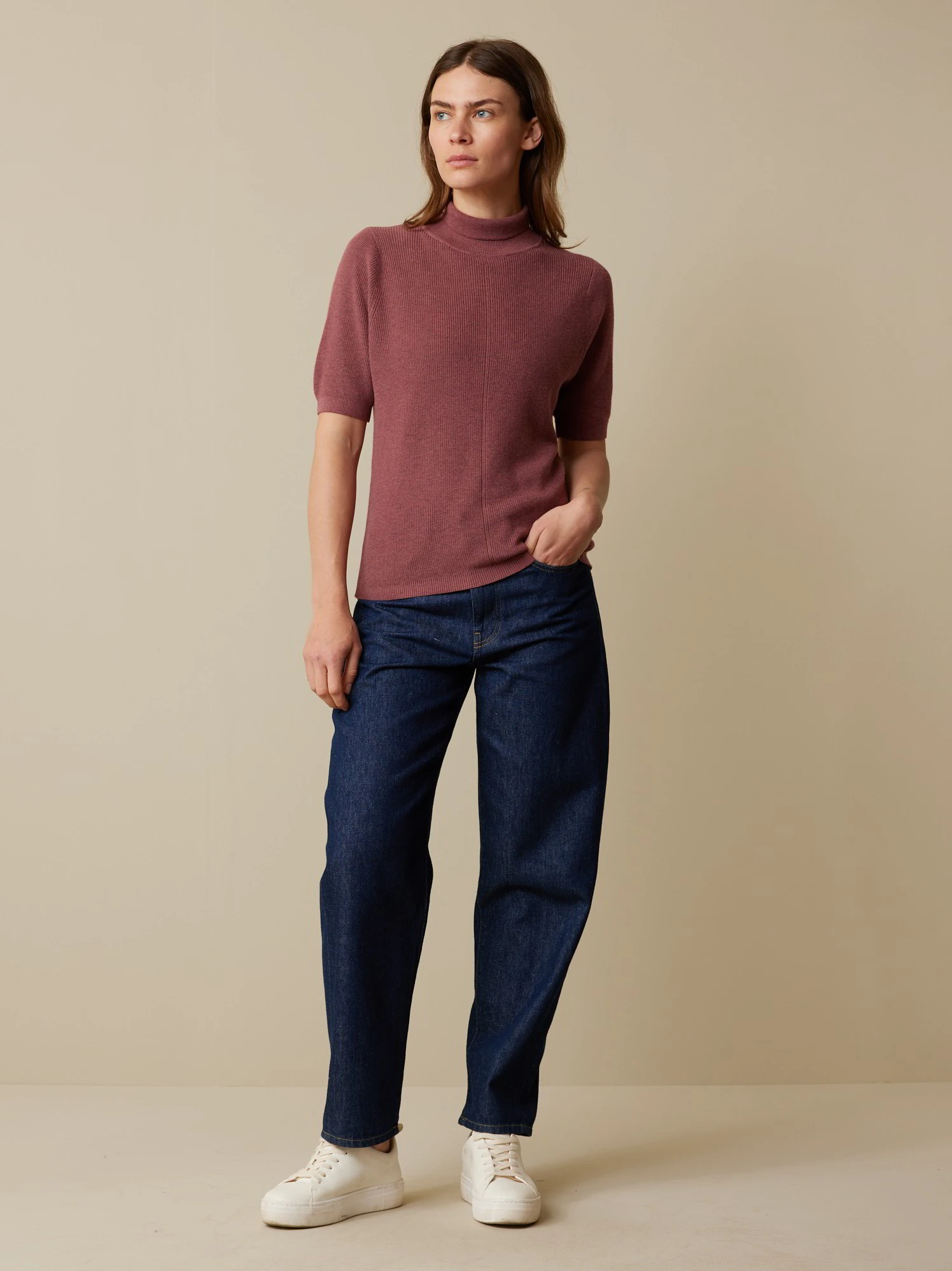Basic-Must-Have aus hautfreundlicher, atmungsaktiver Pima-Baumwolle. Der figurumspielende Schnitt in Kombination mit einem zeitlosen Farbton macht den Halbarm-Pullover in 1×1-Rippe zu einem unverzichtbaren Bestandteil Ihrer Basic-Garderobe – weich, luftig, angenehm. Mit Rollkragen, Ajour-Detail auf der Vorderseite und Bündchen an den Abschlüssen.