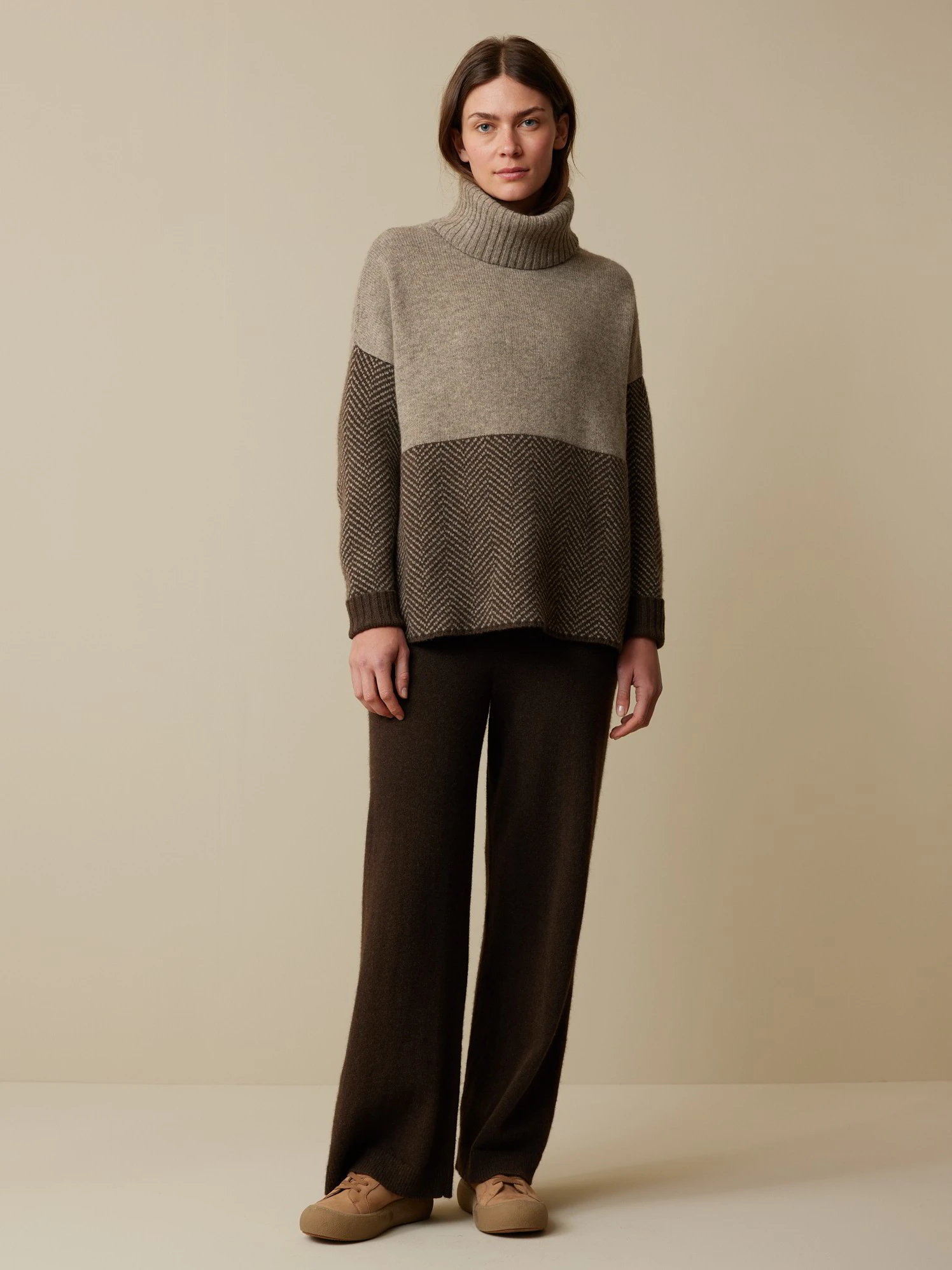 Elegante Fischgrat-Dessinierung, erdende Farben