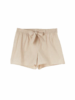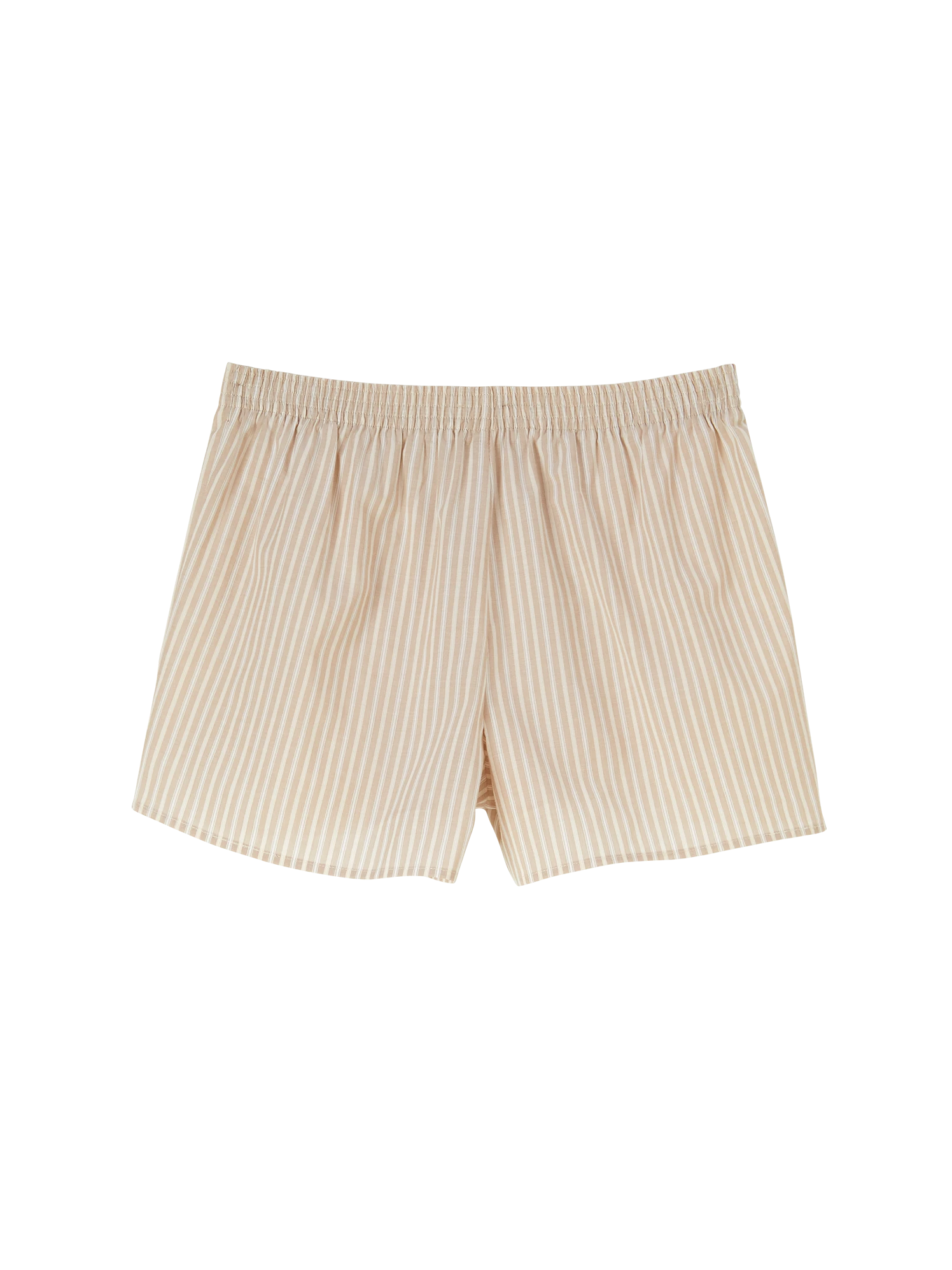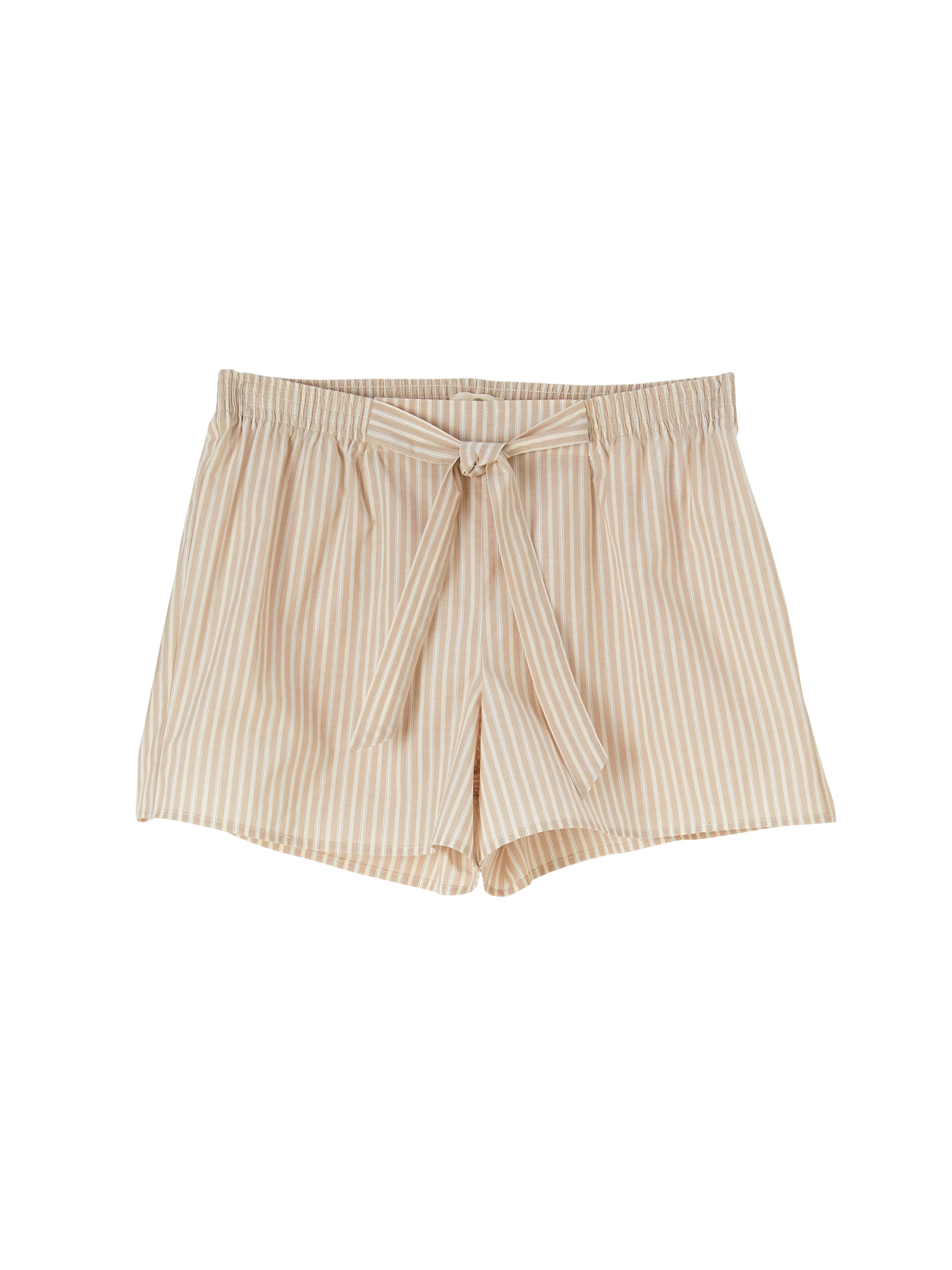 Die kurze Schlafhose aus hautfreundlicher Baumwolle kbA fühlt sich besonders angenehm an, ist unglaublich weich und leicht. Das Modell mit der eleganten Streifendessinierung wirkt klassisch, aber zurückhaltend. Die Shorts hat im Bund einen Gummi- und Kordelzug integriert.