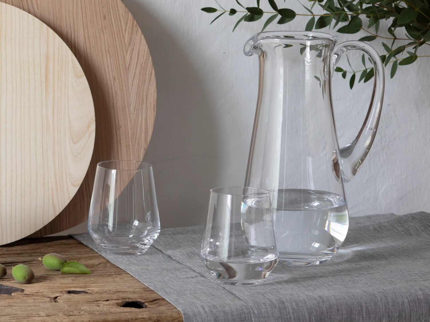 Der klassische, elegante Glaskrug aus Klarglas ist ideal für Säfte, Wasser und abgekühltem Tee. Er besitzt einen Ausgussschnabel und einen großen, praktischen Henkel. Der Krug wird hergestellt in einer Kristallglasmanufaktur in Österreich, welche auf eine über 500-jährige Tradition des Glashandwerk zurückblickt. Größe: H 25 cm. Füllmenge 1,25 Liter.