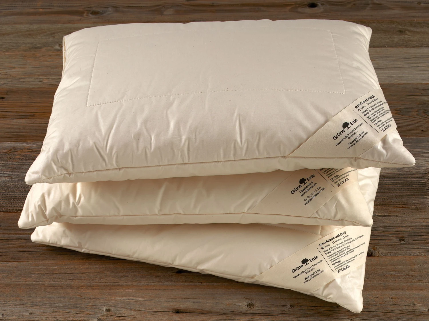 Angenehm leicht, bettet Kopf und Nacken sanft, schmiegt sich gut an. Füllung aus 100 % Schurwolle (Schaf), umhüllt von einem weichen, zweilagigen Bezug aus Baumwoll-Inlett, der mit einem Seidenvlies versteppt ist.