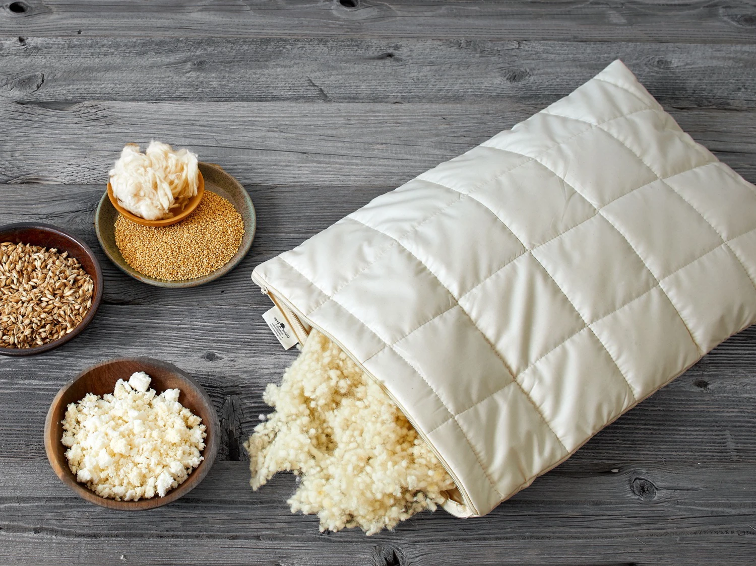 Füllen Sie Ihr eigenes Kissen – mit dem Naturmaterial Ihrer Wahl! Sie bestellen die Kissenhülle (Bezug) in der gewünschten Größe und das Füllmaterial extra. Der Bezug aus hochwertigem Inlett, 100 % Baumwolle, hat einen Reißverschluss: So können Sie das Kissen mit jener Menge an Material befüllen, die Ihnen angenehm ist, später welches nachfüllen bzw. entnehmen. Füllmaterialien: Schurwolle/Kapok (am beliebtesten); Dinkelspelzen (knisternd, anpassungsfähig); Kapok (leicht, mäßig warm); Latexflocken/Kapok (waschbar); Schurwolle (warm), Hirseschalen, Naturlatexflocken