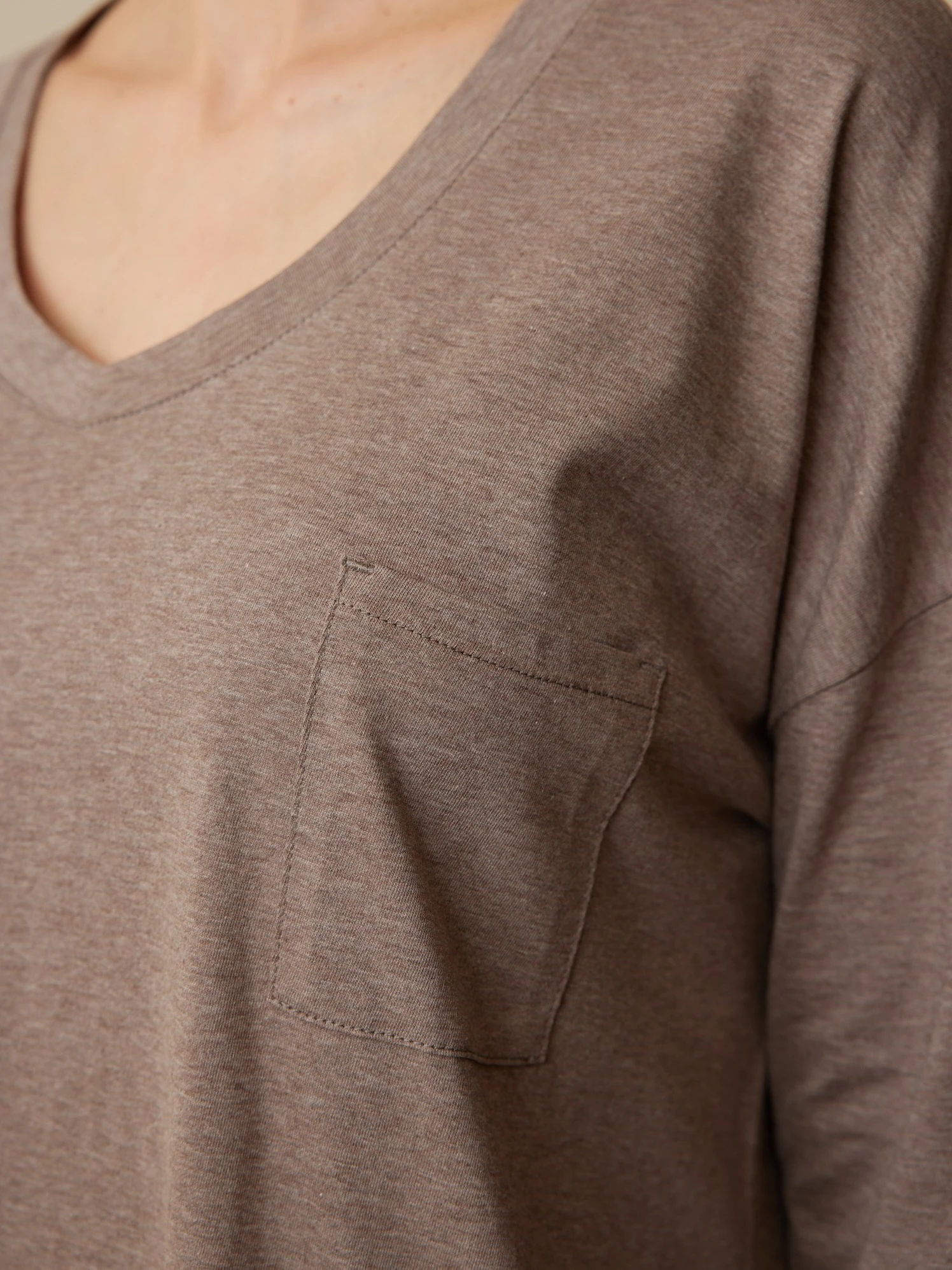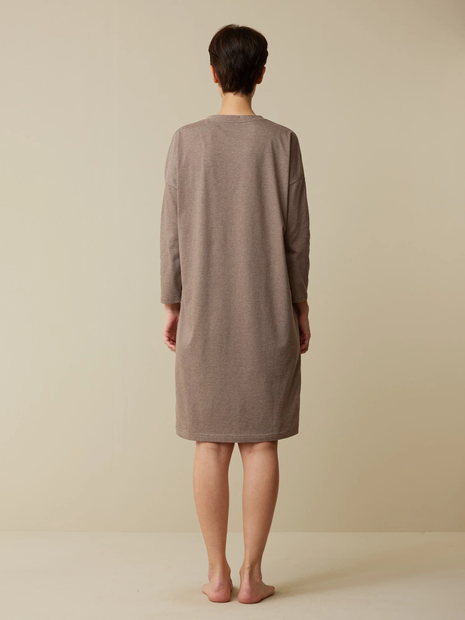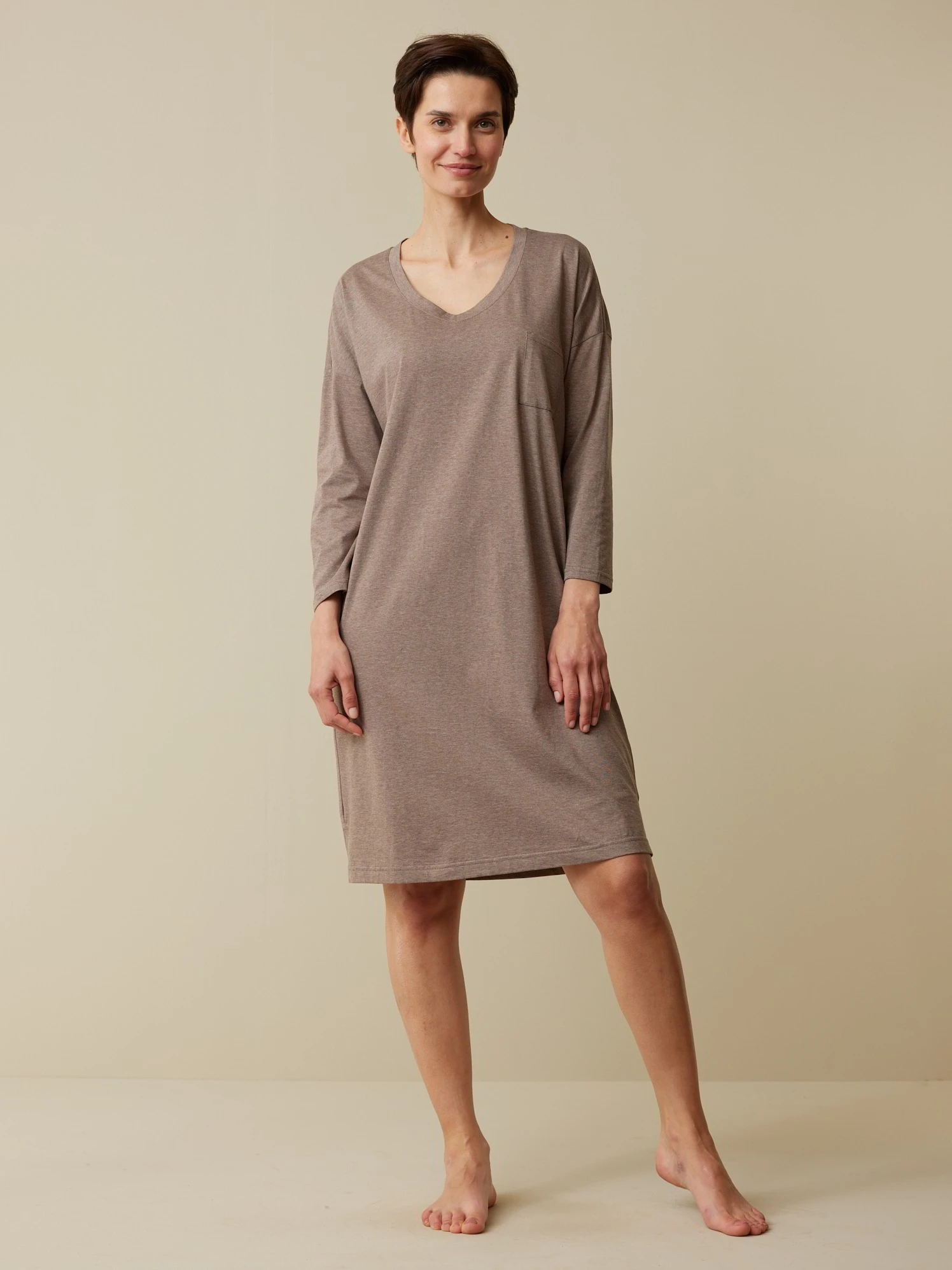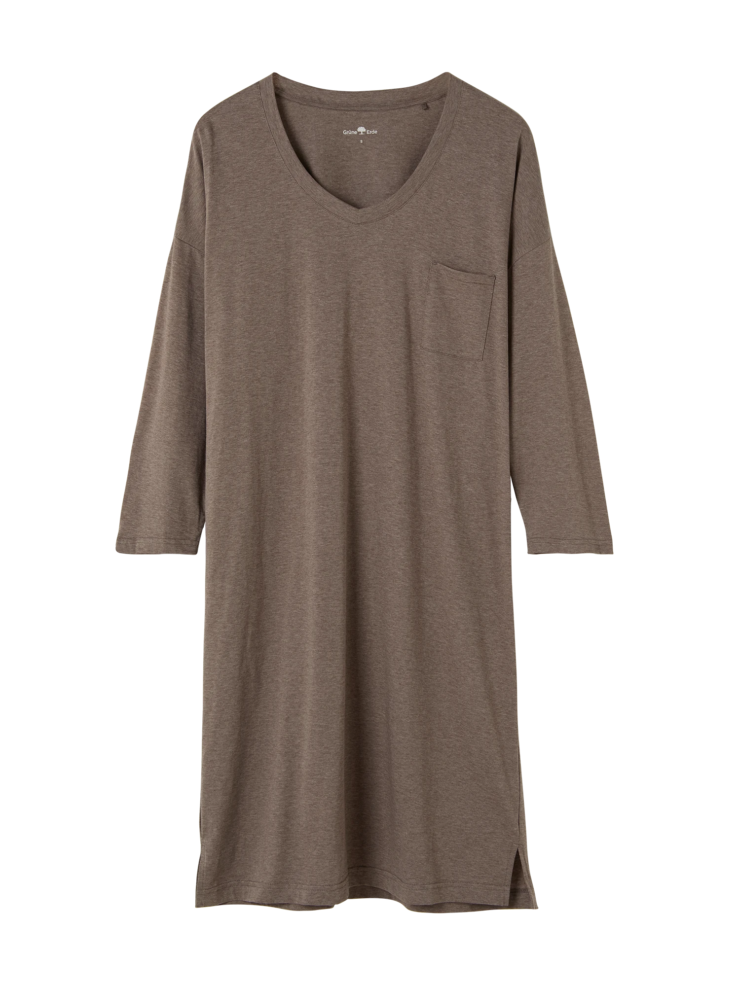 Lockeres Nachthemd aus besonders hautfreundlicher Baumwolle: bequem, sanft zur Haut und weich im Griff. Das Oberteil in Single-Jersey-Qualität hat 3/4-Ärmel, überschnittene Schulterpartien, eine aufgesetzte Brusttasche auf der Vorderseite und einen leicht gerundeten V-Ausschnitt mit 1×1-Rippbündchen. Weitere Details: Seitenschlitze am Saum.