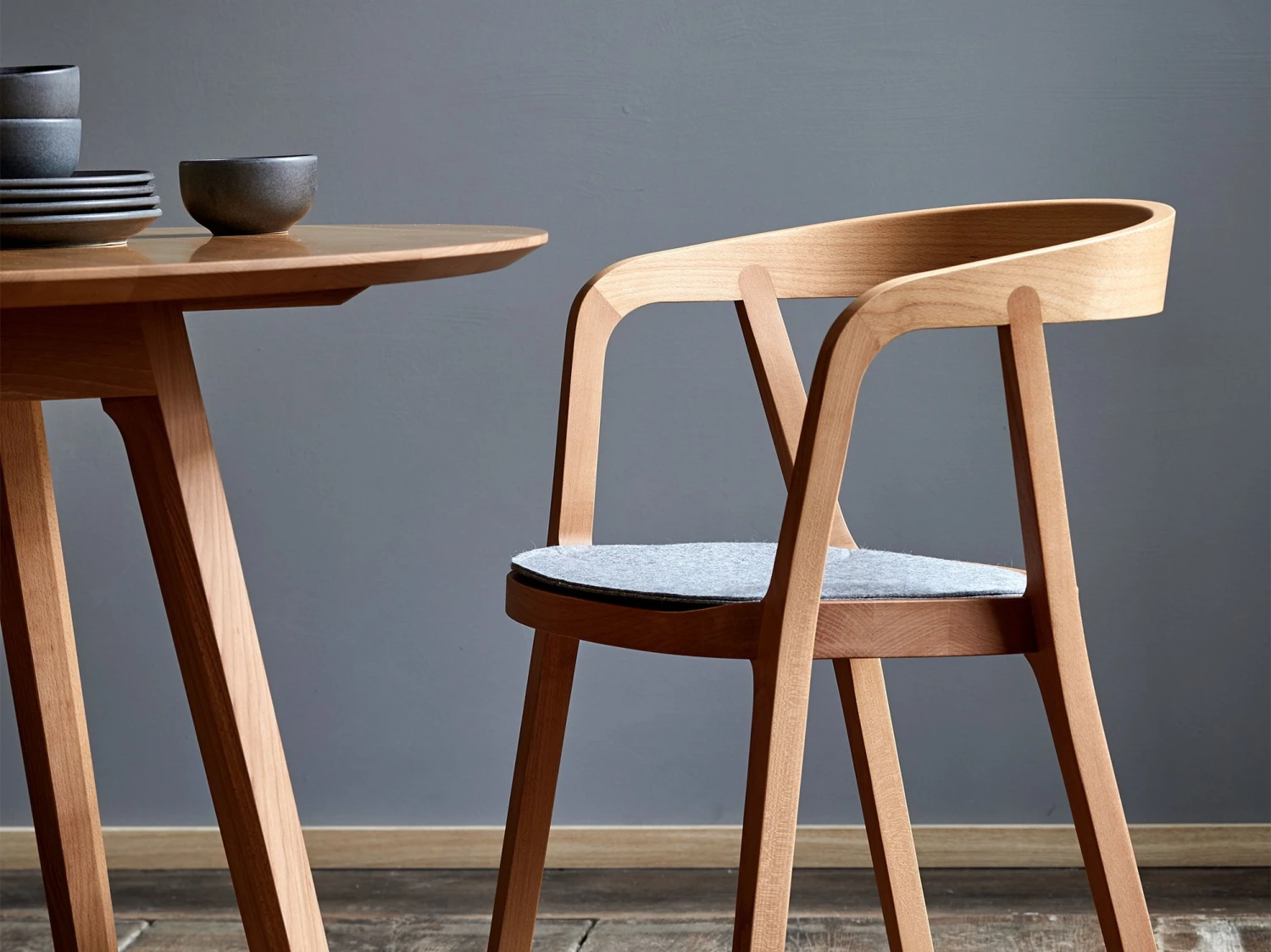 Asensio ist ein zeitgemäßer Massivholzstuhl mit eleganten, organisch fließenden, weichen und klaren Formen sowie hohem Anspruch an die Ergonomie.