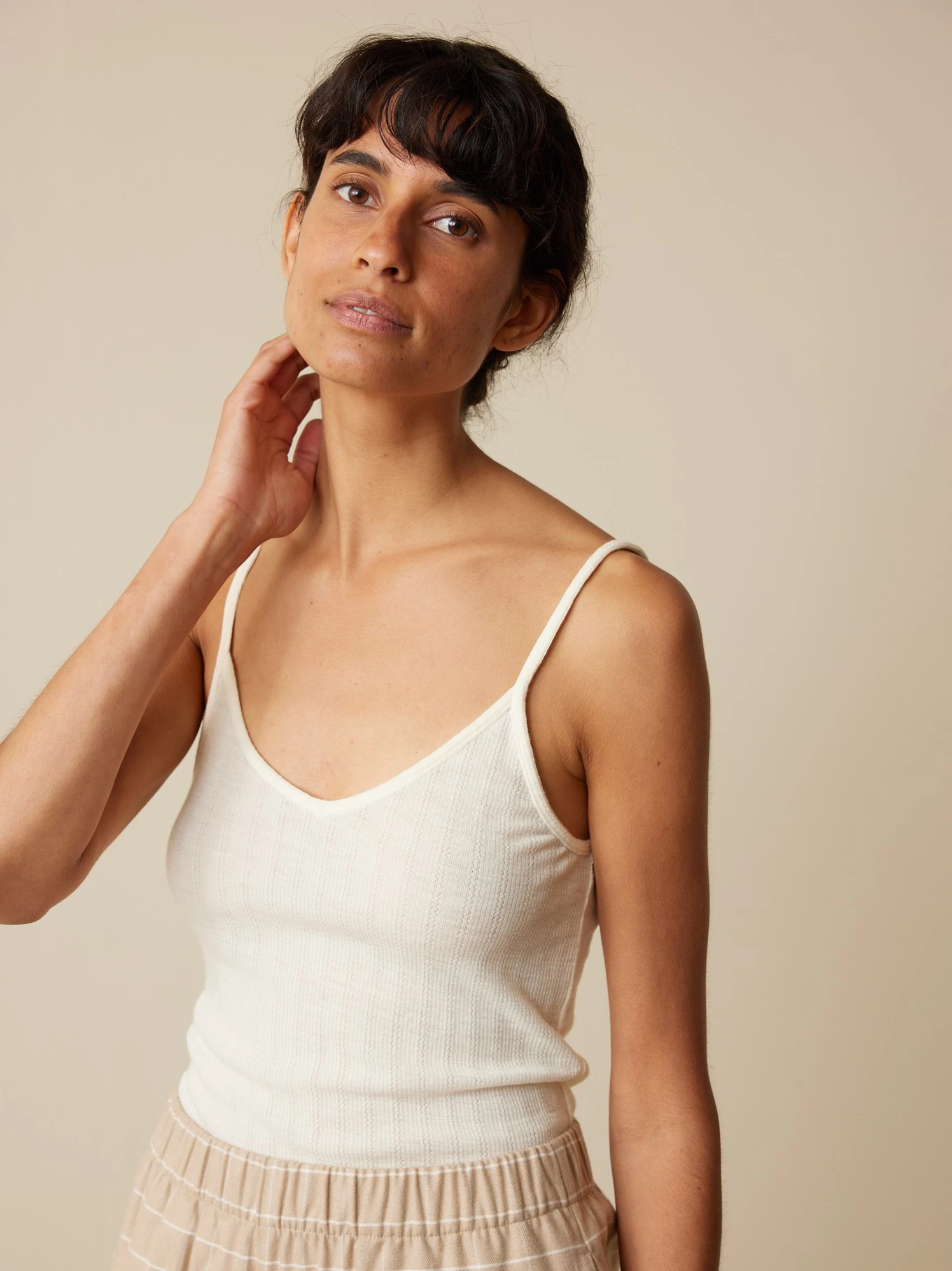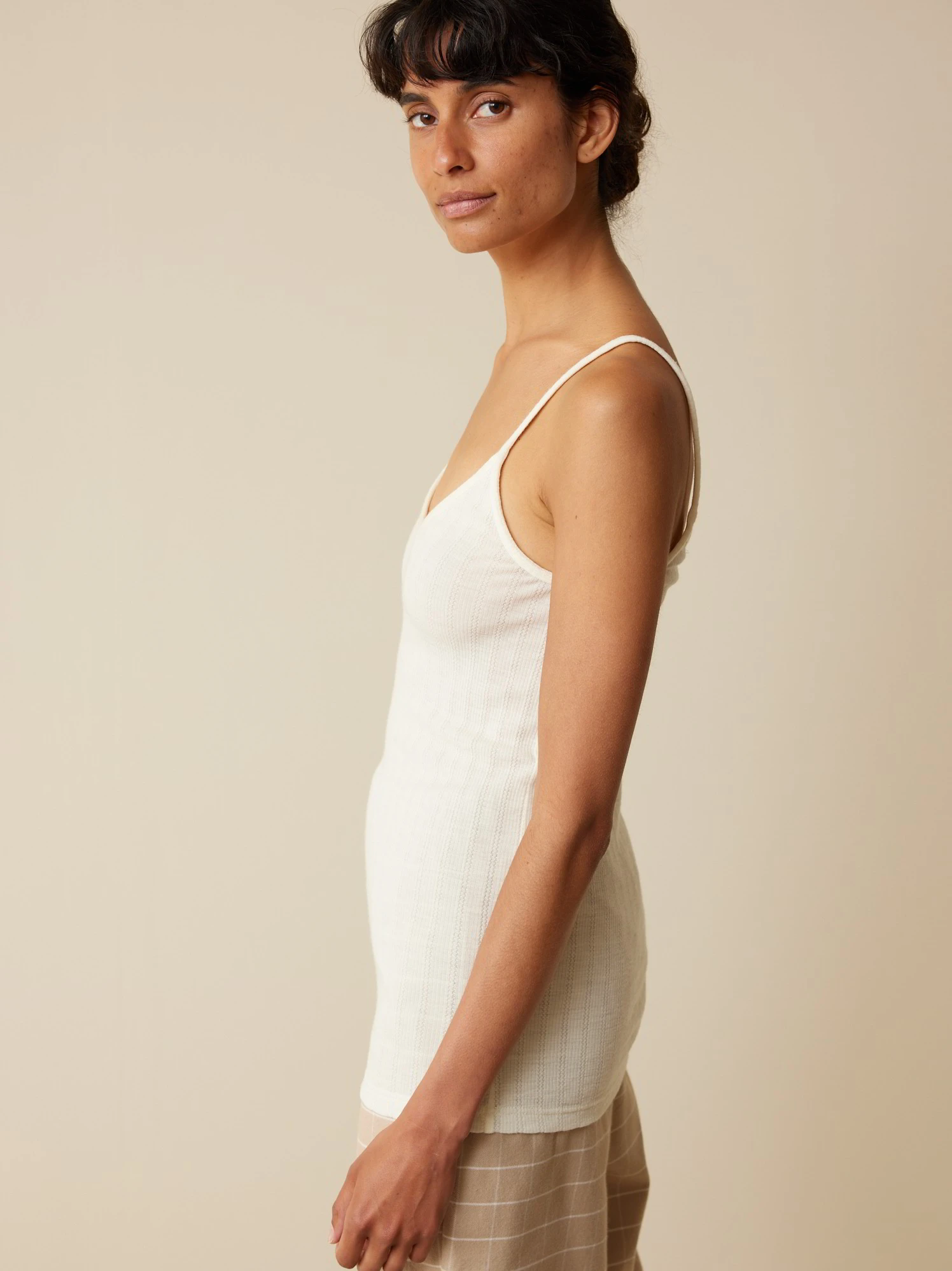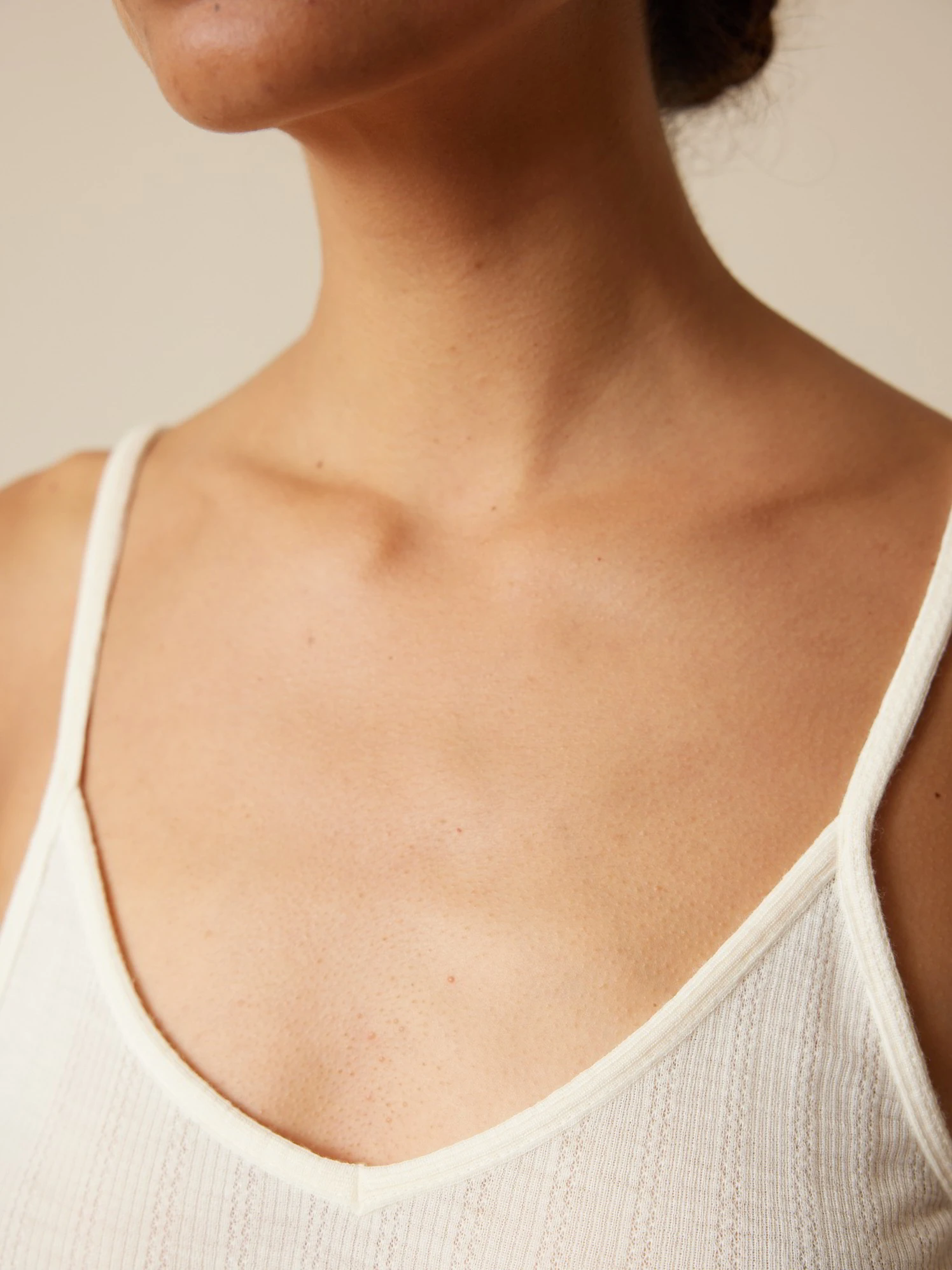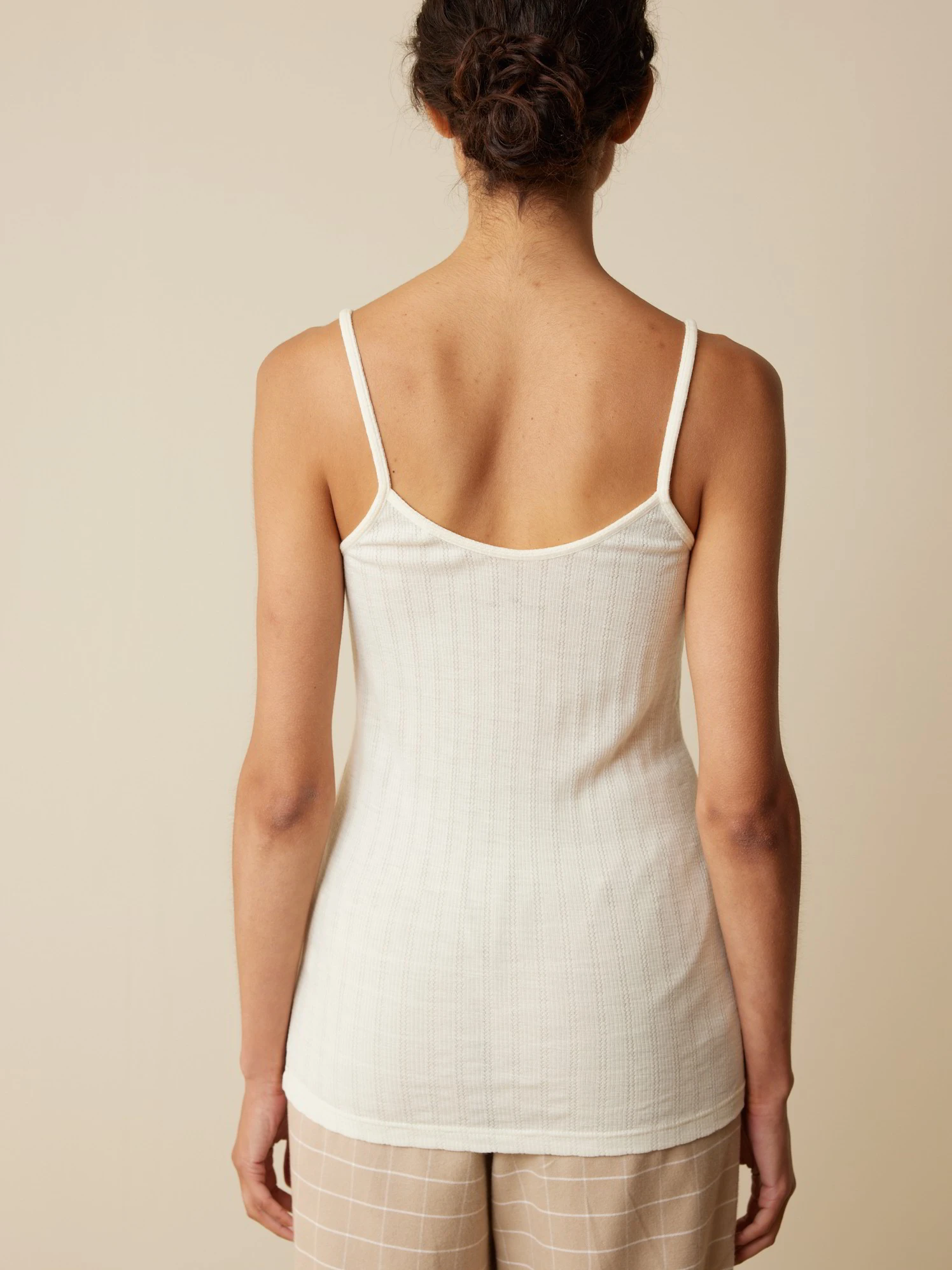 Eleganter Feinstrick aus wertvoller Wolle kbT: Das figurbetonte Spaghettitop mit der feinen Rippstruktur und der zarten Pointelle-Qualität wird garantiert ein beliebtes Basic. Mit schmalen Trägern und abgerundetem V-Ausschnitt.