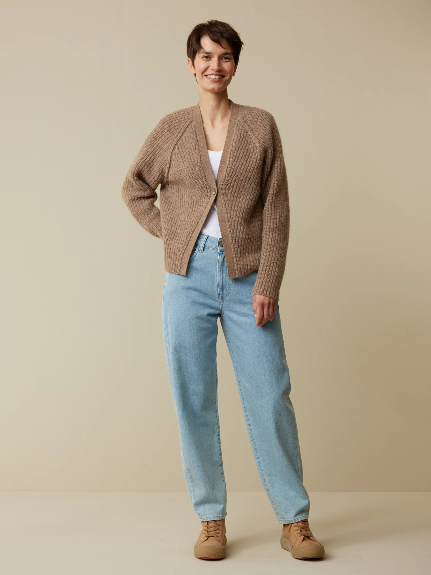 Perfekt für jeden Tag: Jacke in fully-fashioned-Machart. In lockerer Passform, aus angenehm-weicher, ungefärbter Alpakawolle und mit zulaufender Rippenstruktur. Das Modell mit der besonderen Linienführung hat einen Knopf zum Verschließen auf der Vorderseite und lange Raglanärmel. Das Naturmaterial verspricht eine Leichtigkeit, die begeistert!