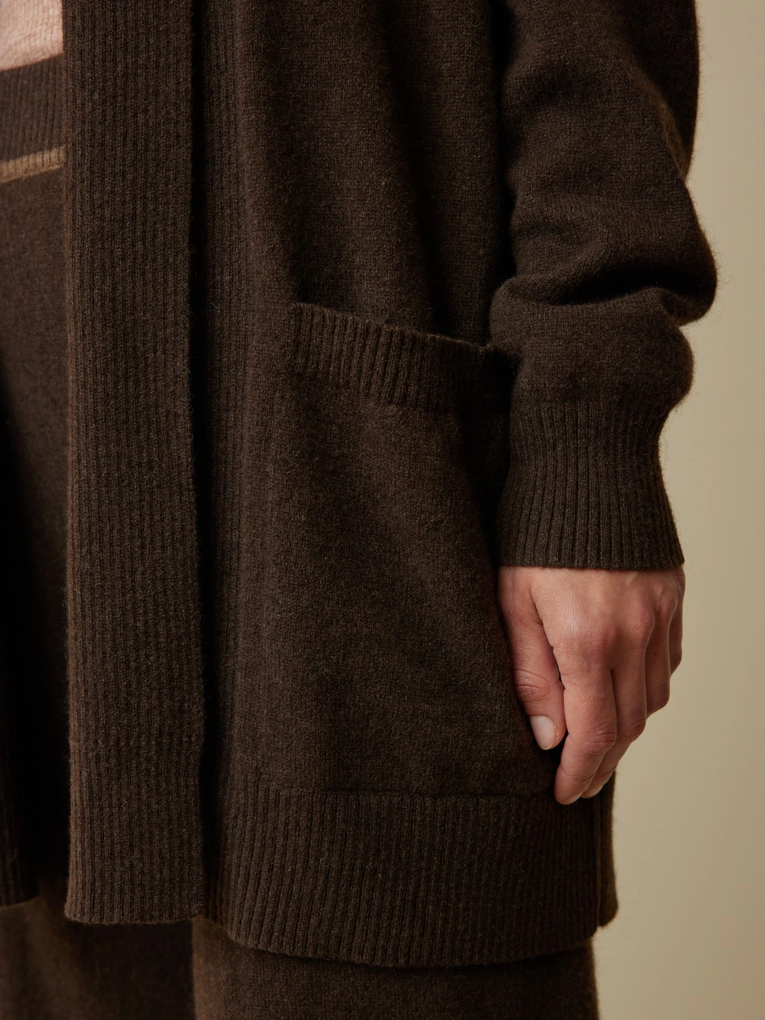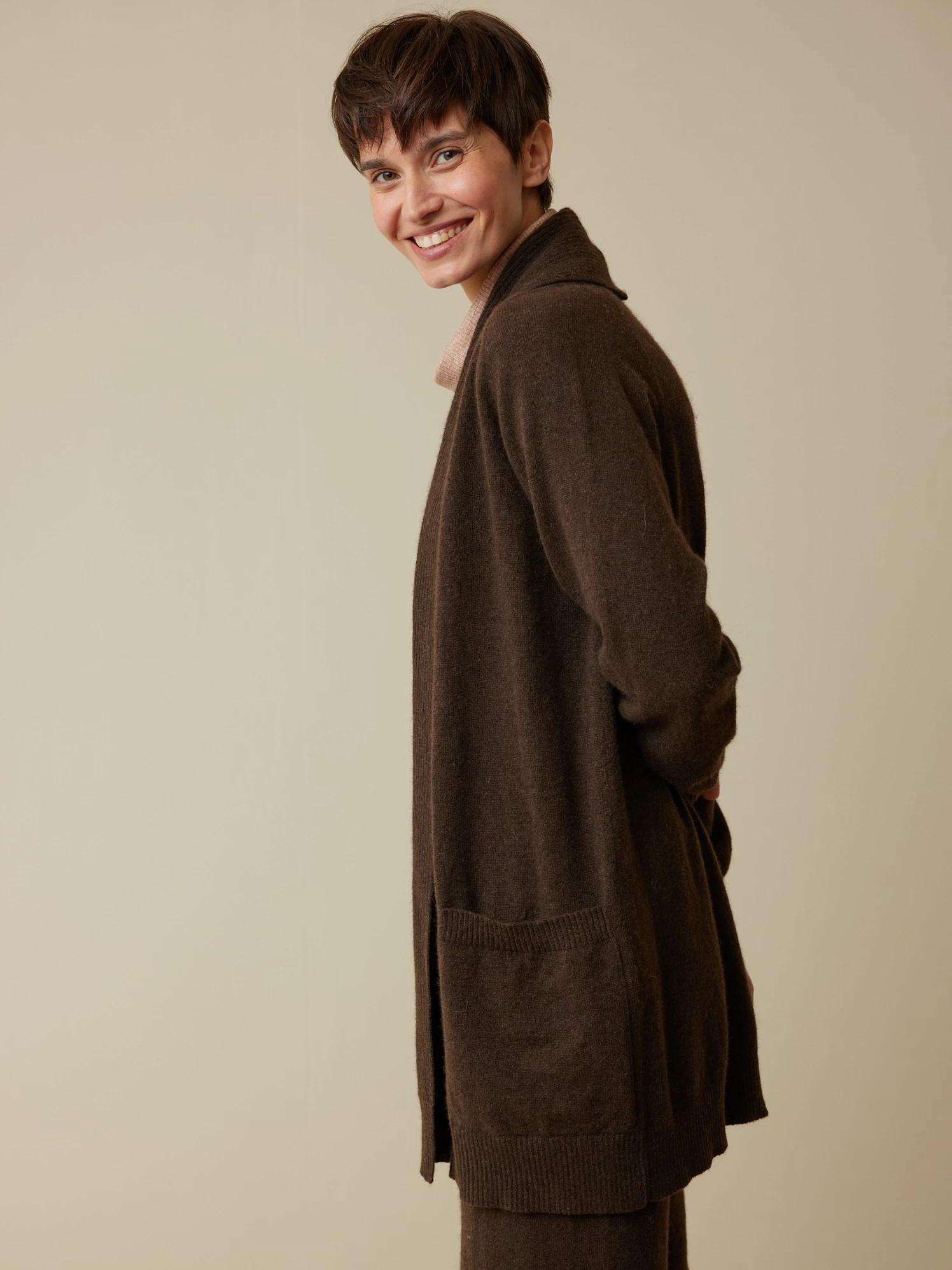 Zeitlos-schöne Strickjacke aus ungefärbtem Yakhaar. Die weiche Haptik und der gemütliche Schnitt ergeben eine angenehme Kombination – ideal für Beruf und Freizeit. Im Patentstrick, mit langen Raglanärmel und aufgesetzten Taschen auf der Vorderseite.